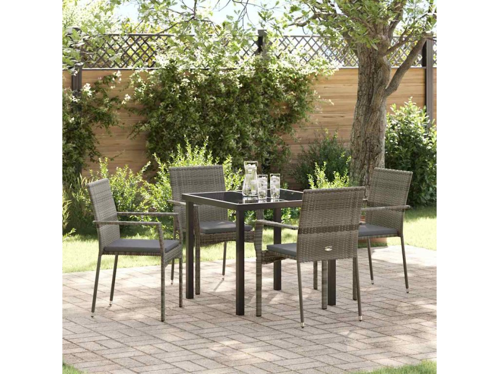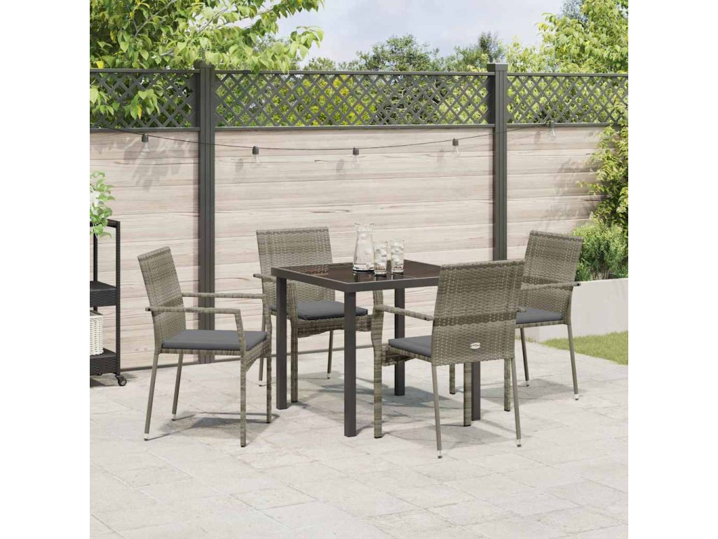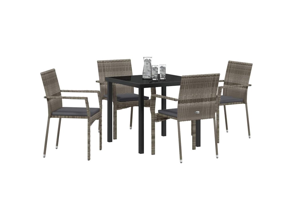 Zahradní jídelní souprava s polštářem 5 pcs Šedá Poly ratan 3380093