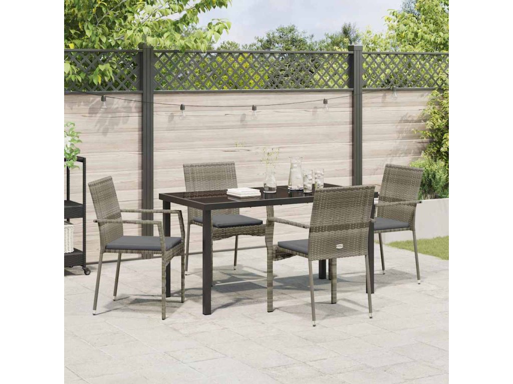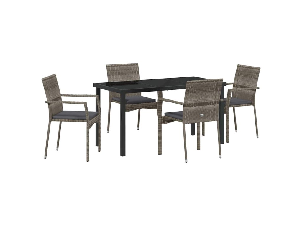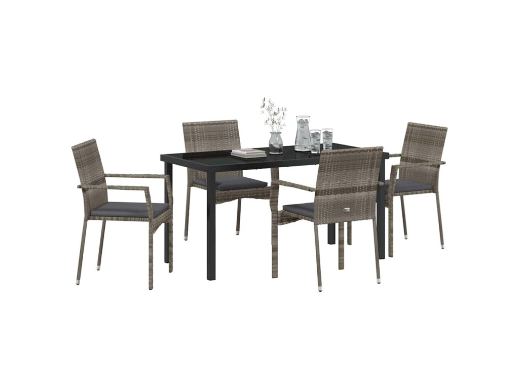 Zahradní jídelní souprava s polštářem 5 pcs Šedá Poly ratan 3380094