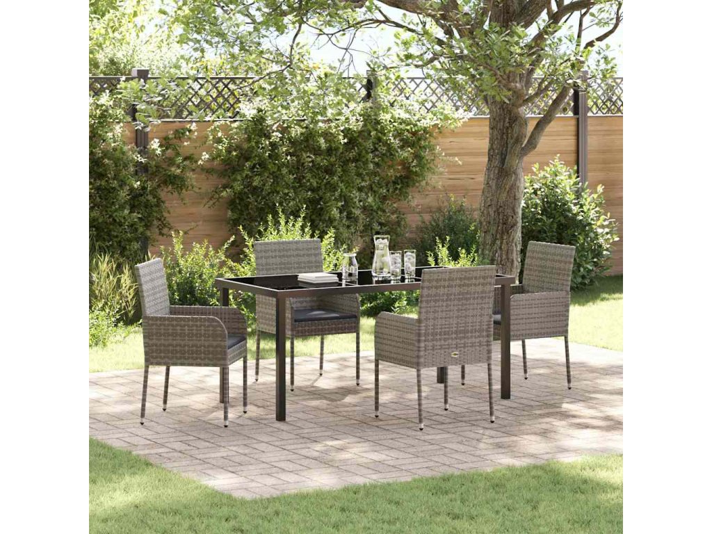 Zahradní jídelní souprava s polštářem 5 pcs Šedá Poly ratan 3380109