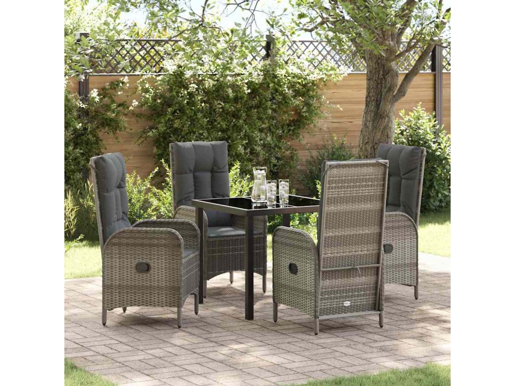 Zahradní jídelní souprava s polštářem 5 pcs Šedá Poly ratan 3380128