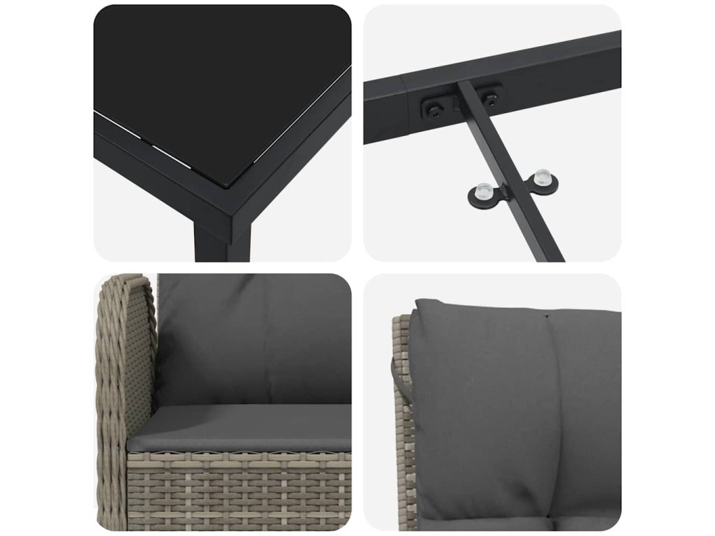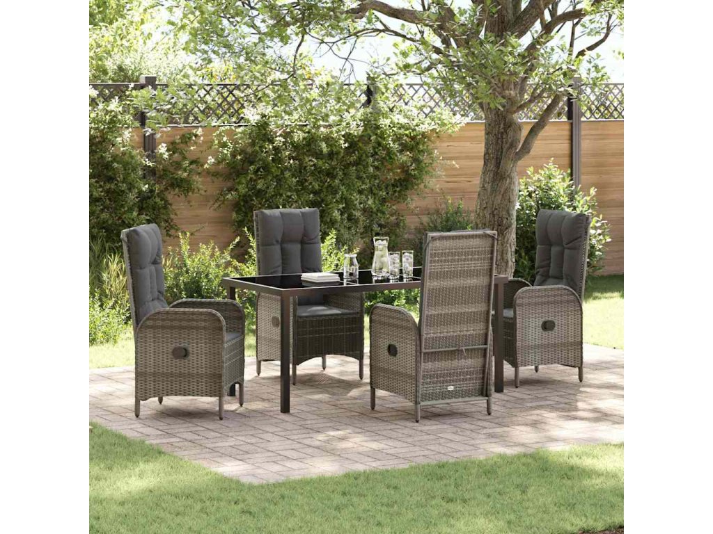 Zahradní jídelní souprava s polštářem 5 pcs Šedá Poly ratan 3380130