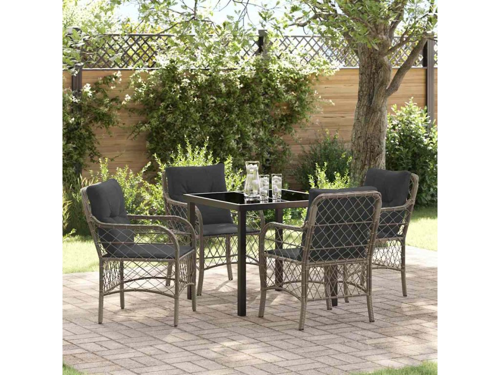 Zahradní jídelní souprava s polštářem 5 pcs Šedá Poly ratan 3380219