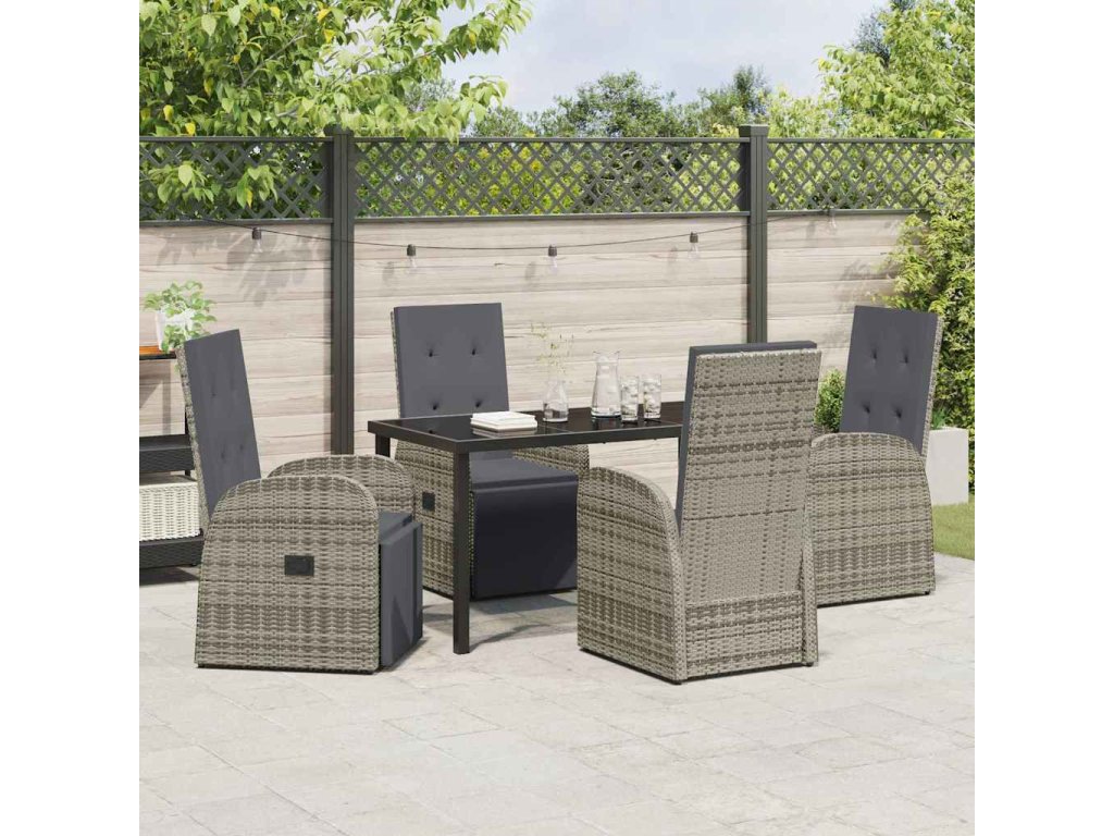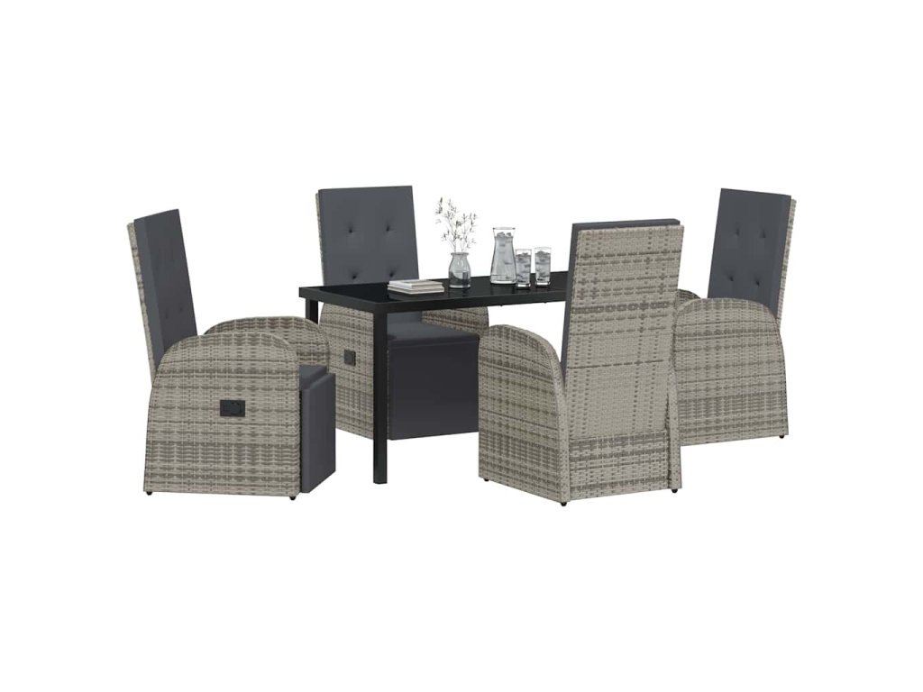 Zahradní jídelní souprava s polštářem 5 pcs Šedá polyratan 3379487