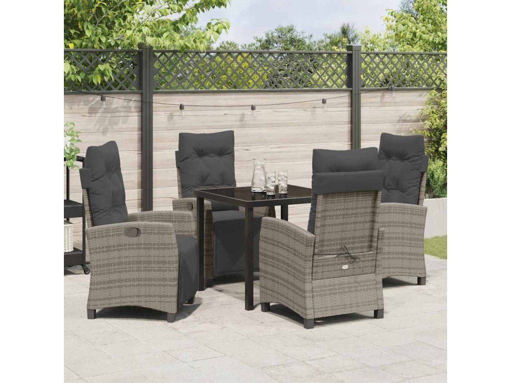 Vysoce kvalitní materiály Tento stůl a židle jsou z polyratanu a tvrzeného skla, takže jsou odolné a elegantní. Polyratan vydrží počasí, aby vypadaly skvěle po celý rok, a ocelová konstrukce dodává extra podporu. Funkční komponenty Stůl má skleněný povrch, což je skvělý prostor pro jídlo, a polyratanové opěrky a sedáky zvyšují pohodlí. Vše se skvěle doplňuje pro úžasný zážitek z jídla. Univerzální funkce Tento set má ruční polohovatelné opěradlo, což umožňuje každému si nastavit pohodlnou pozici na lenošení nebo při jídle. Usability context Perfektní pro letní grilování a odpočinek, zvedá atmosféru v zahradě a dělá terasy elegantní, ideální pro snídaně na slunci nebo útulné večeře. Údržbové tipy Pro delší životnost tohoto setu používejte kryt, když ho nepoužíváte. Tím ochráníte materiály před počasím a prodloužíte jejich životnost, údržba je tak snadná.- Barva: Šedá