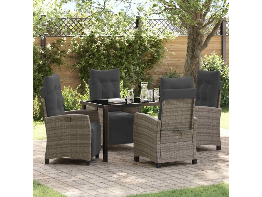 Vysoce kvalitní materiály Tento stůl a židle jsou z polyratanu a tvrzeného skla, takže jsou odolné a elegantní. Polyratan vydrží počasí, aby vypadaly skvěle po celý rok, a ocelová konstrukce dodává extra podporu. Funkční komponenty Stůl má skleněný povrch, což je skvělý prostor pro jídlo, a polyratanové opěrky a sedáky zvyšují pohodlí. Vše se skvěle doplňuje pro úžasný zážitek z jídla. Univerzální funkce Tento set má ruční polohovatelné opěradlo, což umožňuje každému si nastavit pohodlnou pozici na lenošení nebo při jídle. Usability context Perfektní pro letní grilování a odpočinek, zvedá atmosféru v zahradě a dělá terasy elegantní, ideální pro snídaně na slunci nebo útulné večeře. Údržbové tipy Pro delší životnost tohoto setu používejte kryt, když ho nepoužíváte. Tím ochráníte materiály před počasím a prodloužíte jejich životnost, údržba je tak snadná.- Barva: Šedá
