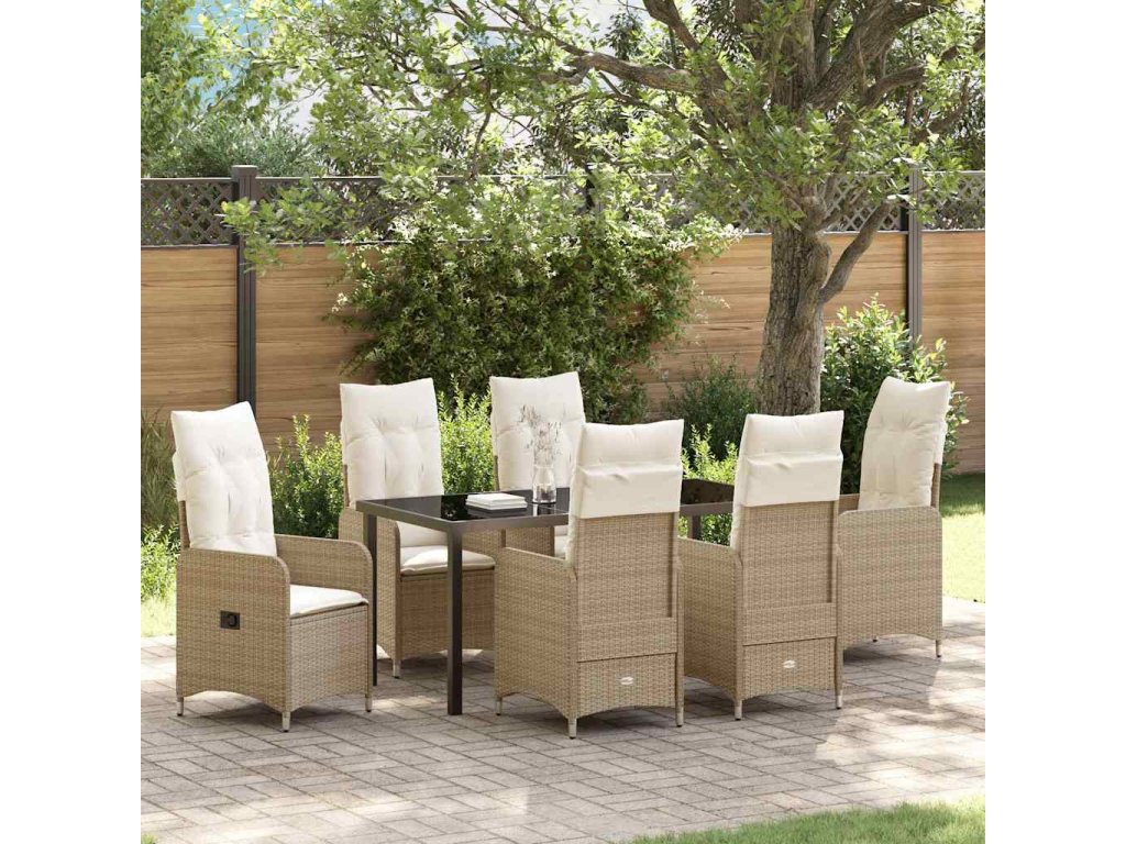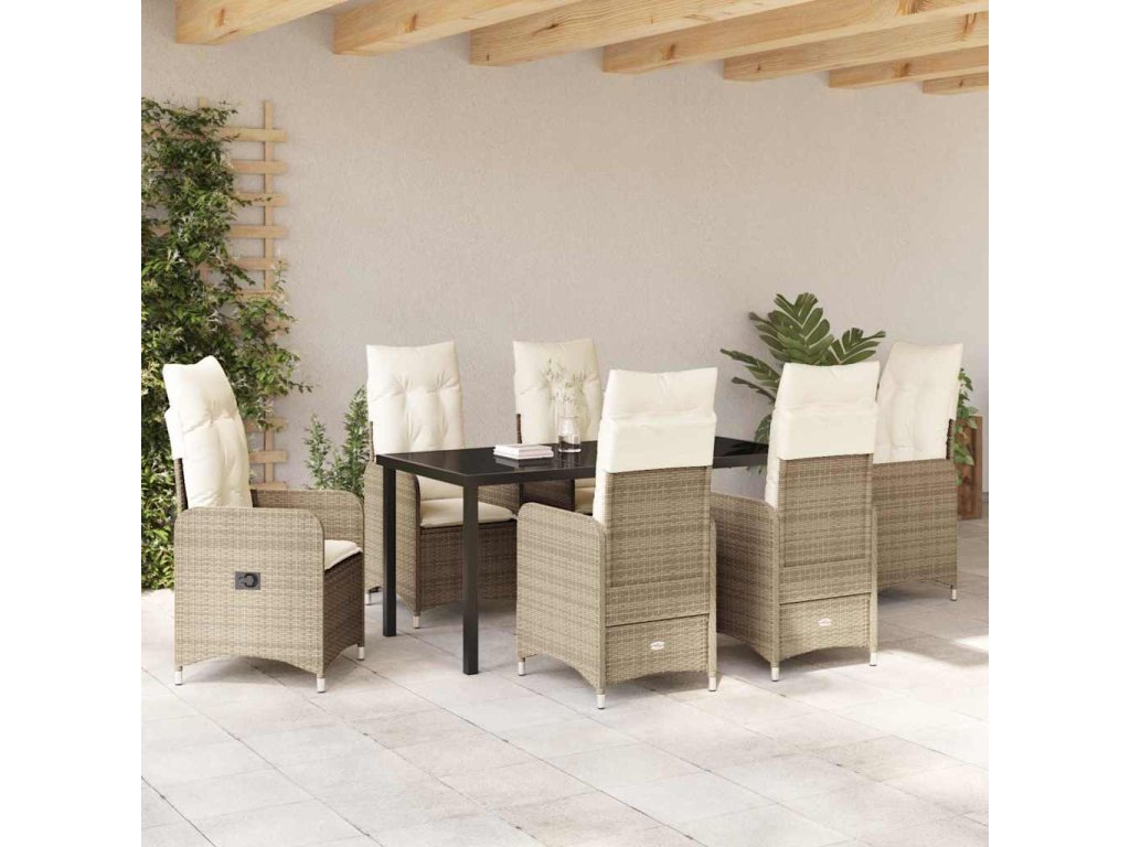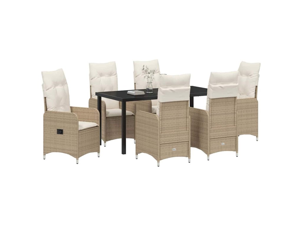 Zahradní jídelní souprava s polštářem 7 pcs Béžová Poly ratan 3379657