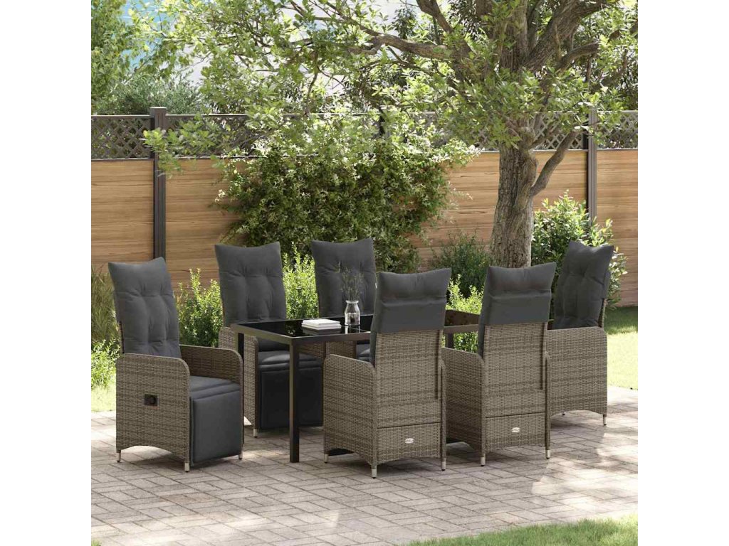 Tento venkovní skládací zahradní jídelní set je perfektní mix moderního stylu a funkčnosti, takže promění každou zahradu nebo terasu v něco speciálního. Se svou stylovou tkanou texturou je fakt ideální pro ty, co chtějí estetiku i pohodlí v venkovním nábytku.