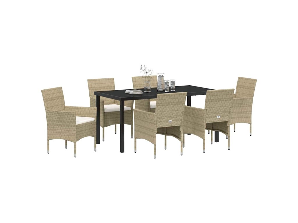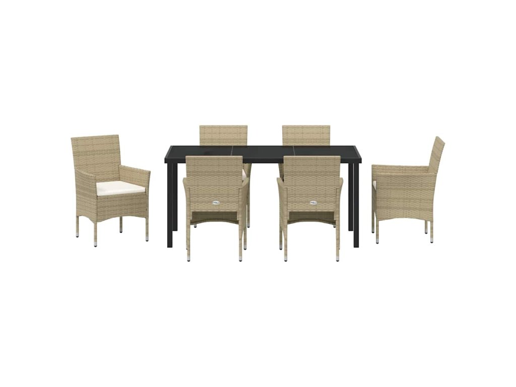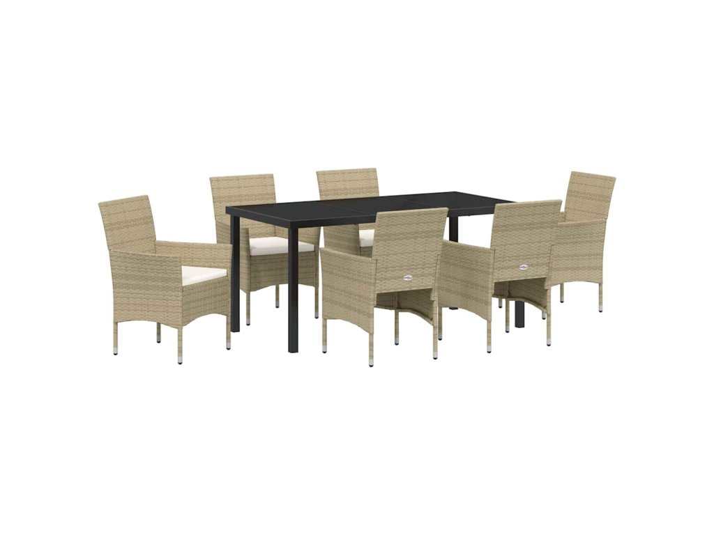 Zahradní jídelní souprava s polštářem 7 pcs Béžová Poly ratan 3379741