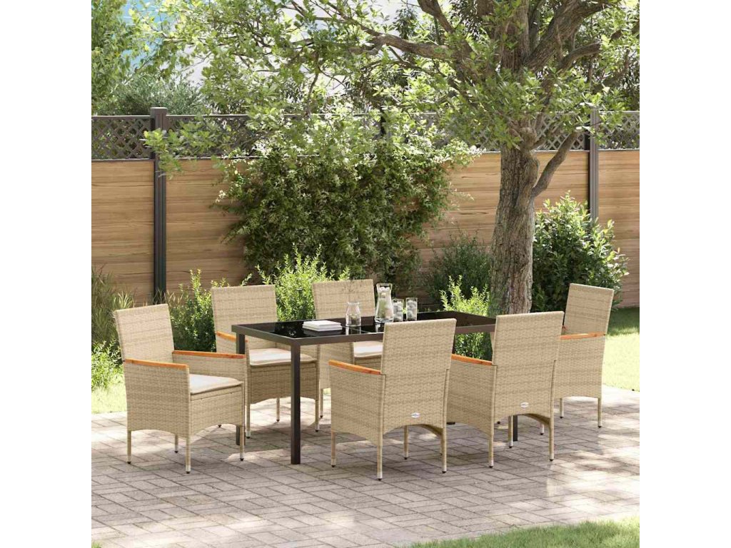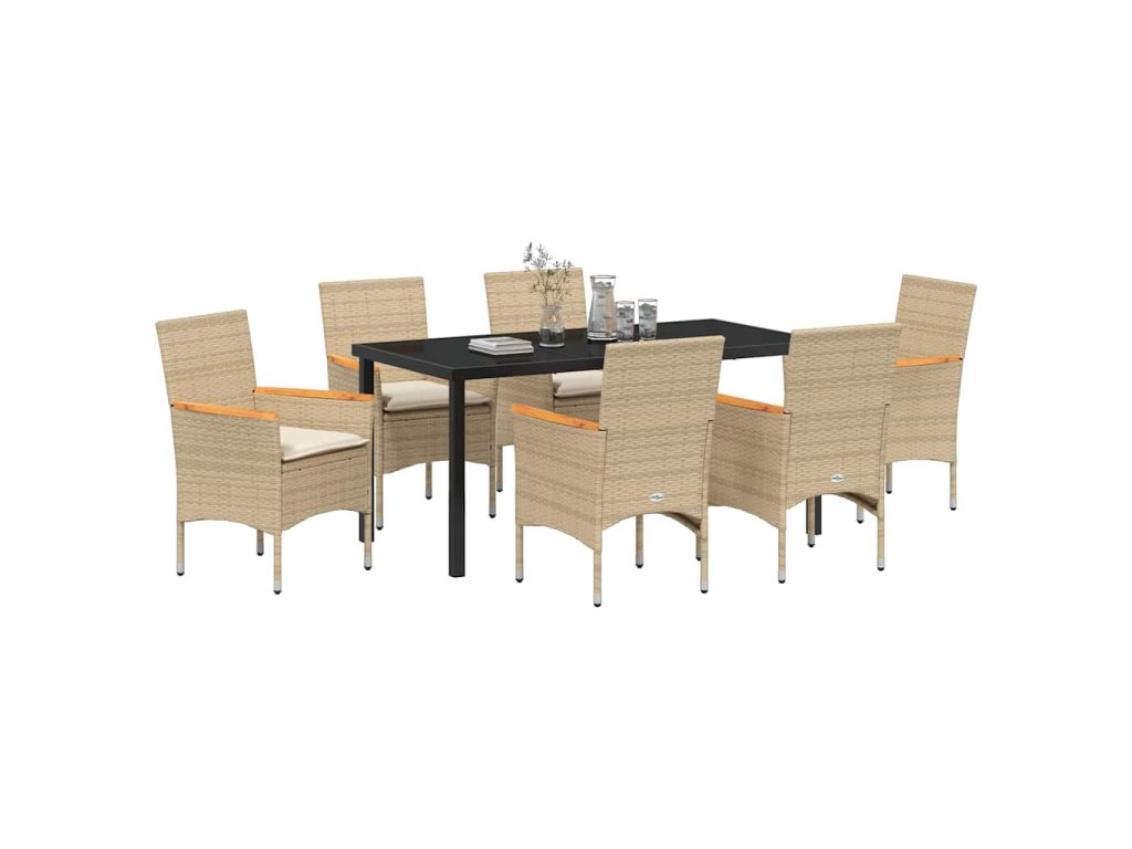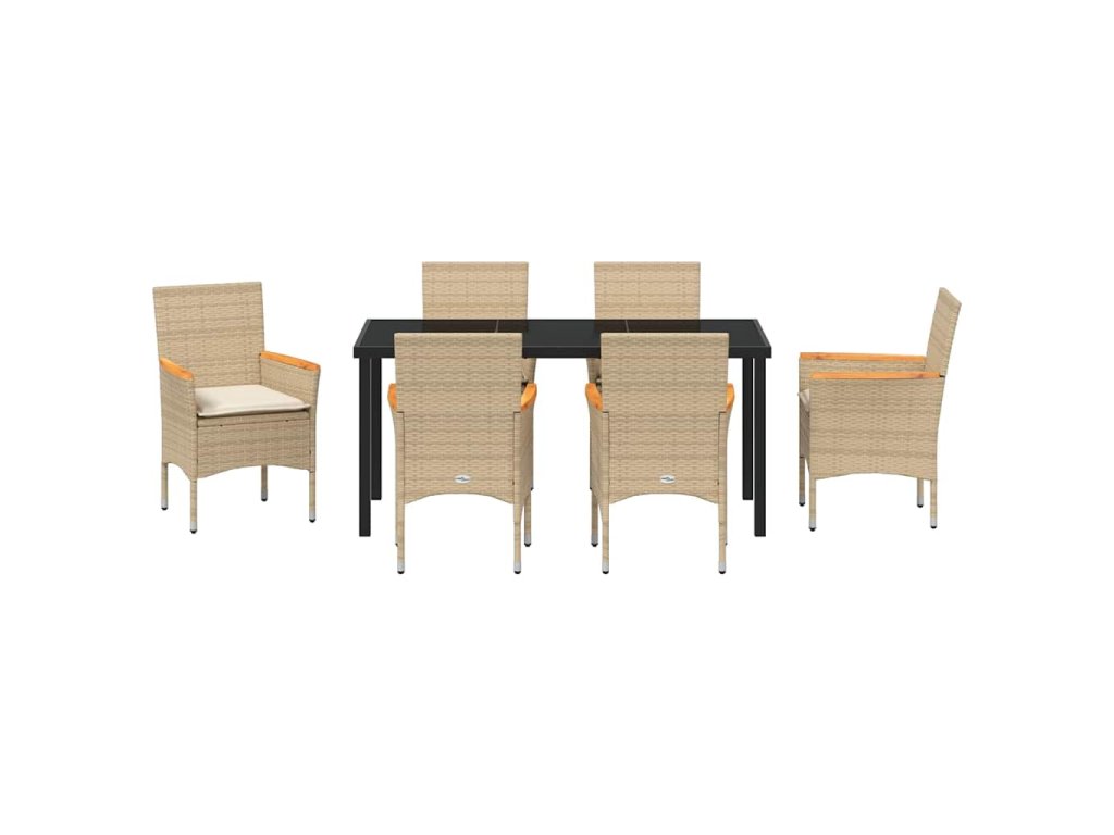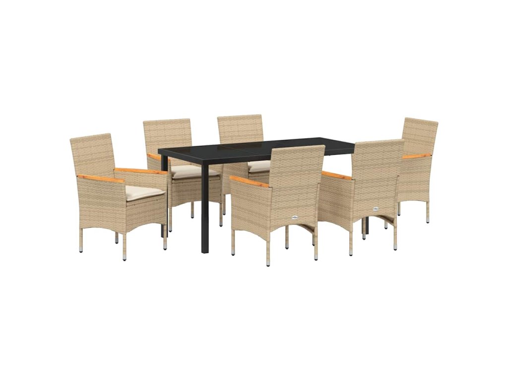 Zahradní jídelní souprava s polštářem 7 pcs Béžová Poly ratan 3379860