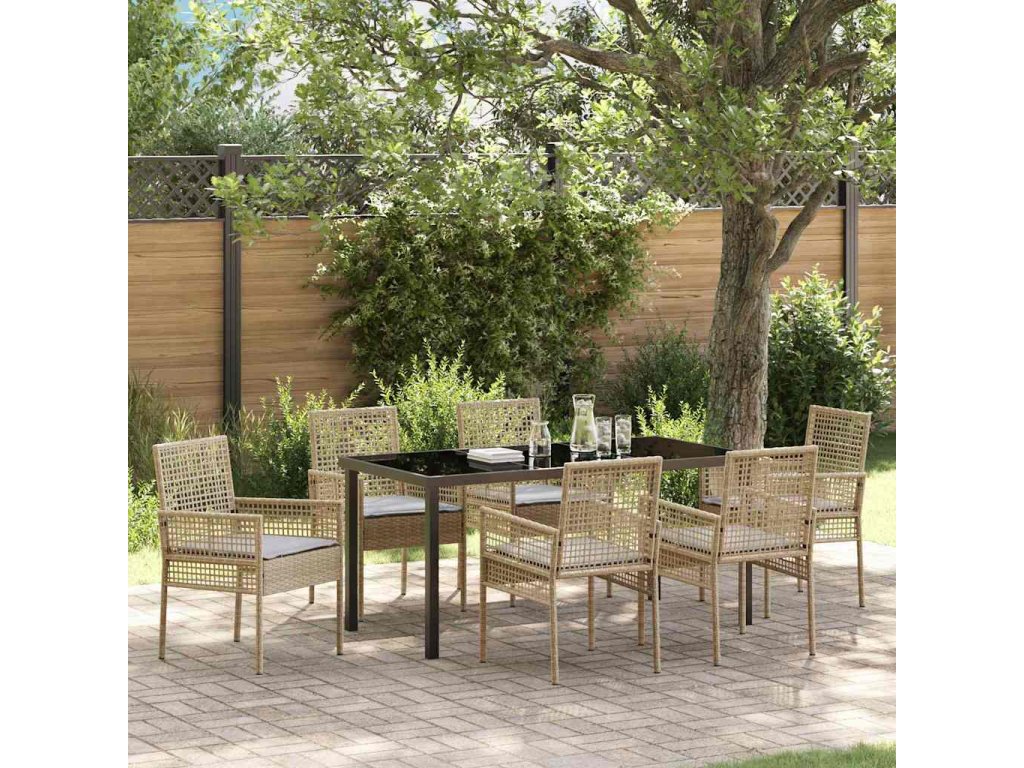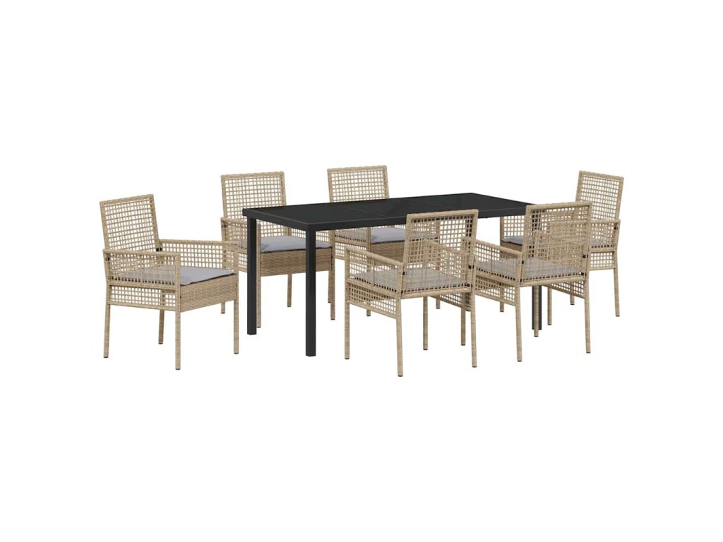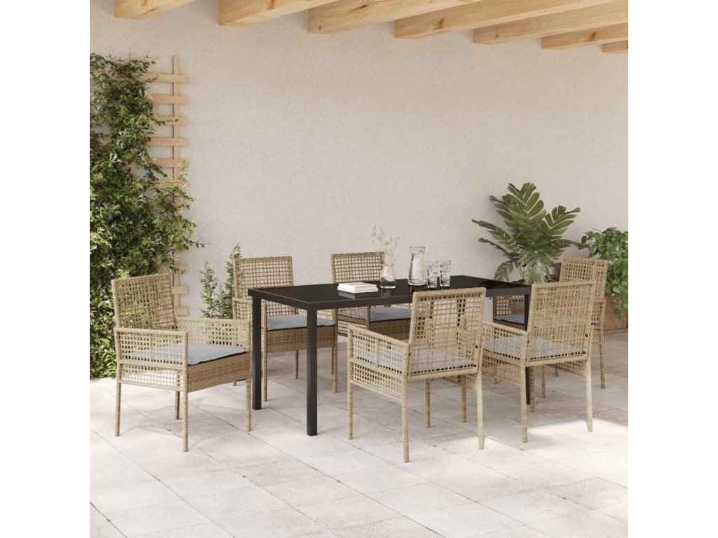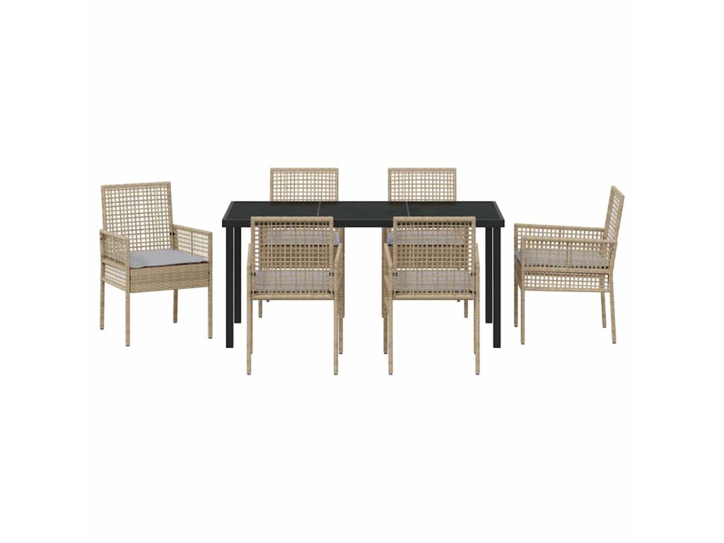 Zahradní jídelní souprava s polštářem 7 pcs Béžová Poly ratan 3379888