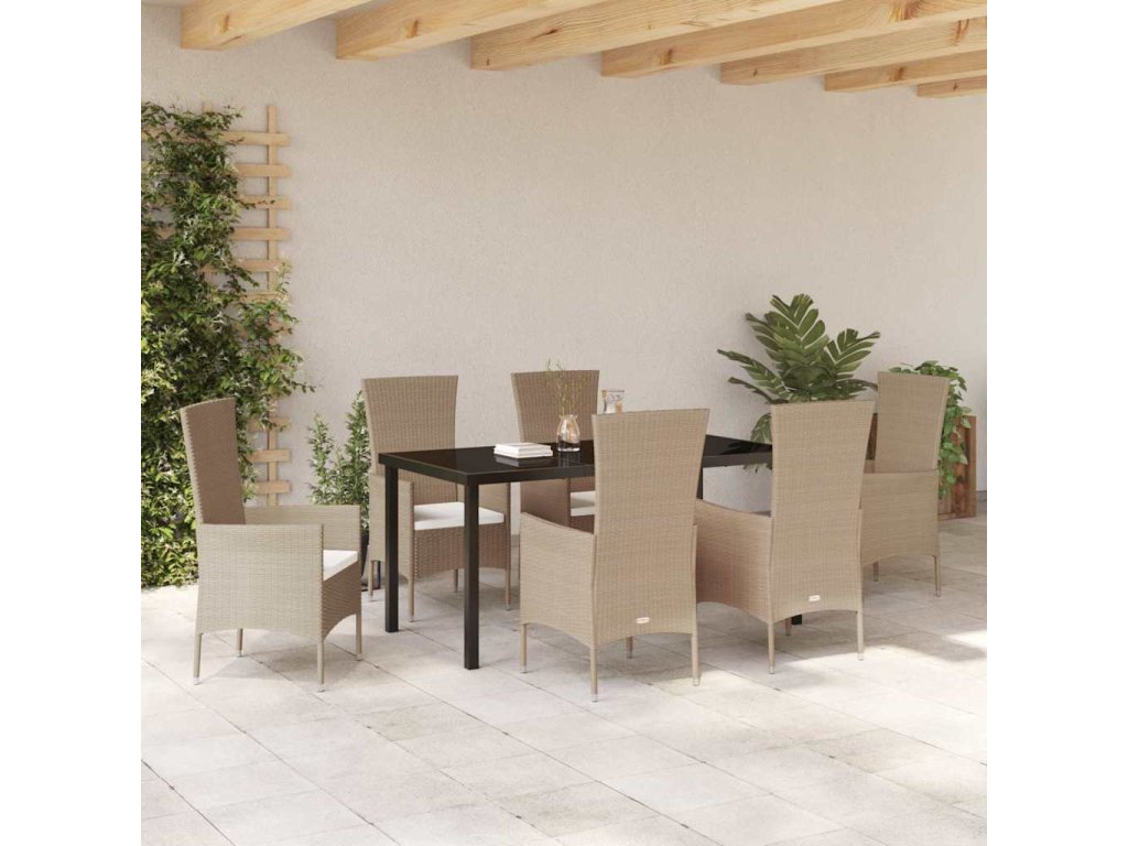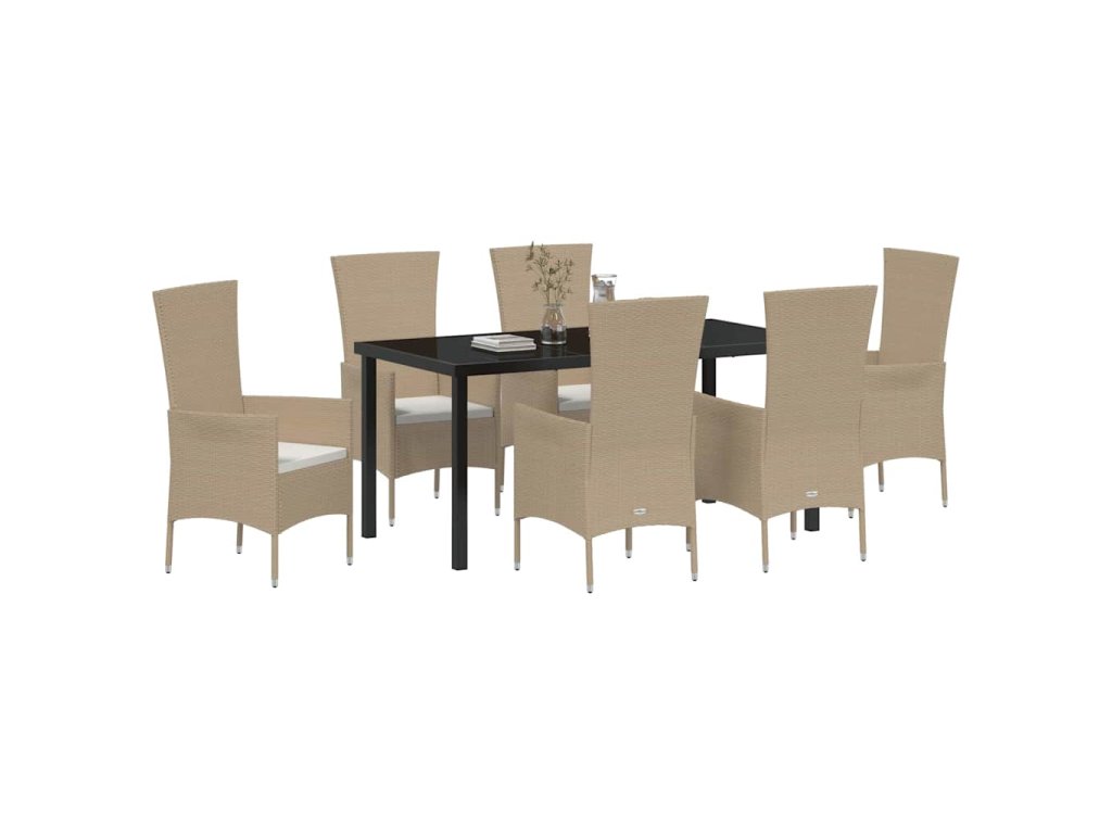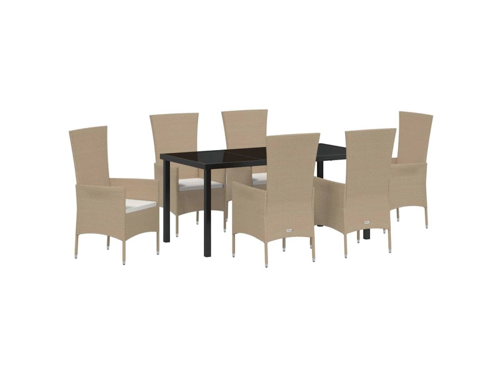 Zahradní jídelní souprava s polštářem 7 pcs Béžová polyratan 3379461
