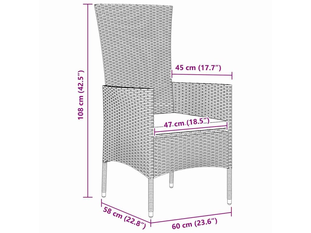 Když hledáš stylový a praktický set venkovního nábytku, tenhle je bomba. Perfektní pro vytvoření pohodlného a stylového venkovního prostoru na relaxaci nebo na pokec s kámoši. Tkaný vzor a pěkný, decentní barvy mu dodávají luxusní, ale útulný vzhled, který láká každého, aby si udělal pohodu a užil si čerstvý vzduch. Ať už máš rodinnou večeři nebo jen tak si pokecáváš s přáteli, tenhle set ti zážitek posune na jinou úroveň.