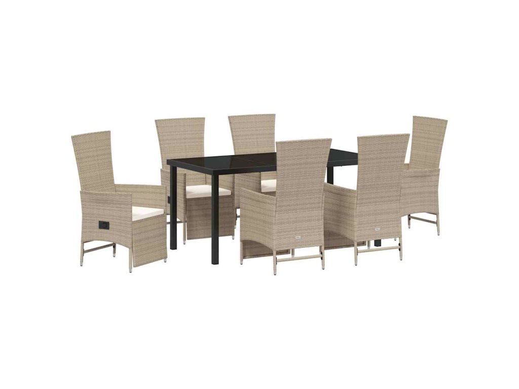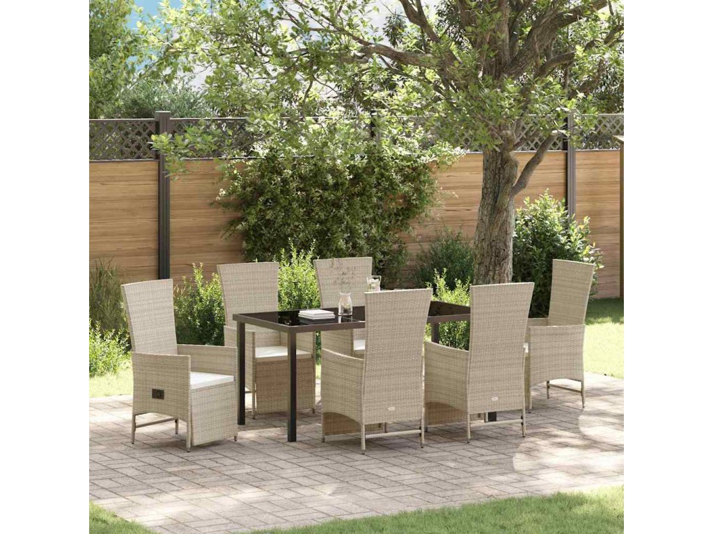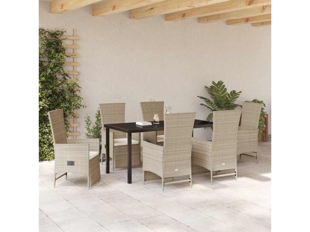 Zahradní jídelní souprava s polštářem 7 pcs Béžová polyratan 3379475