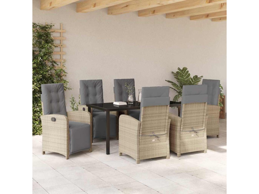 Zahradní jídelní souprava s polštářem 7 pcs Béžová polyratan 3380341