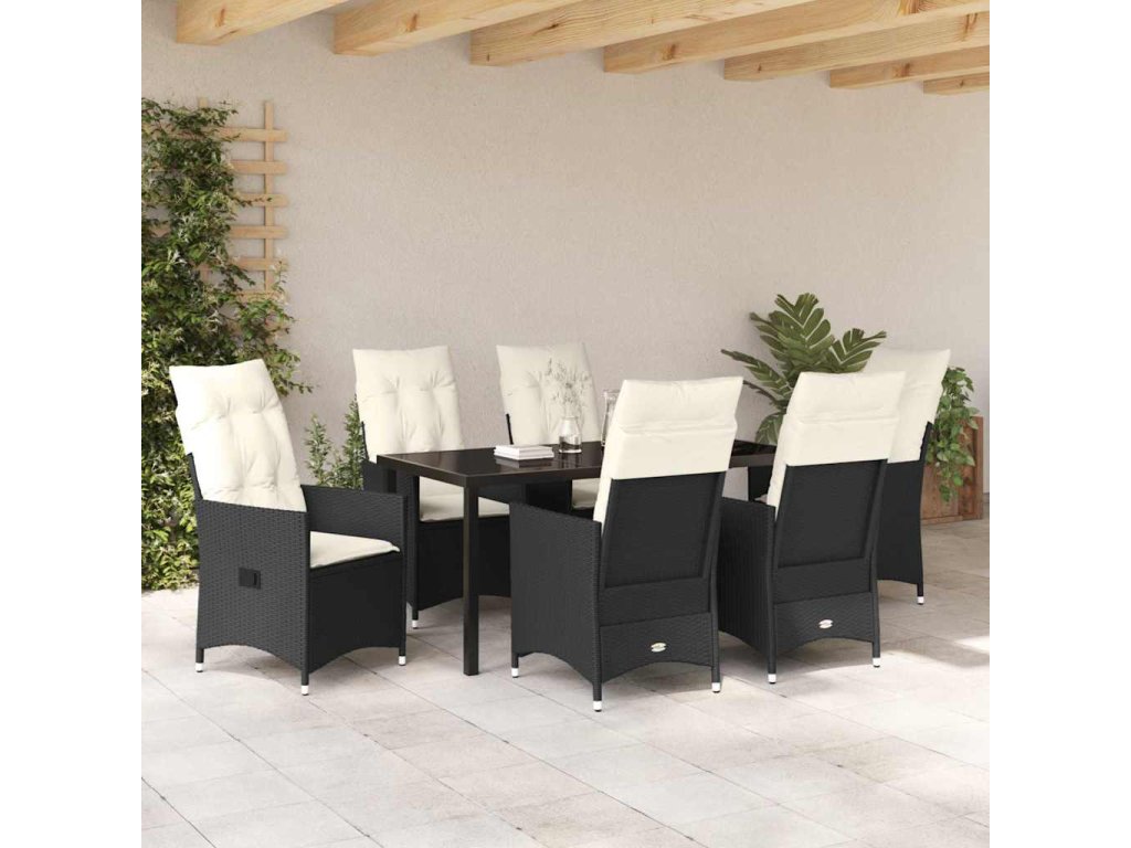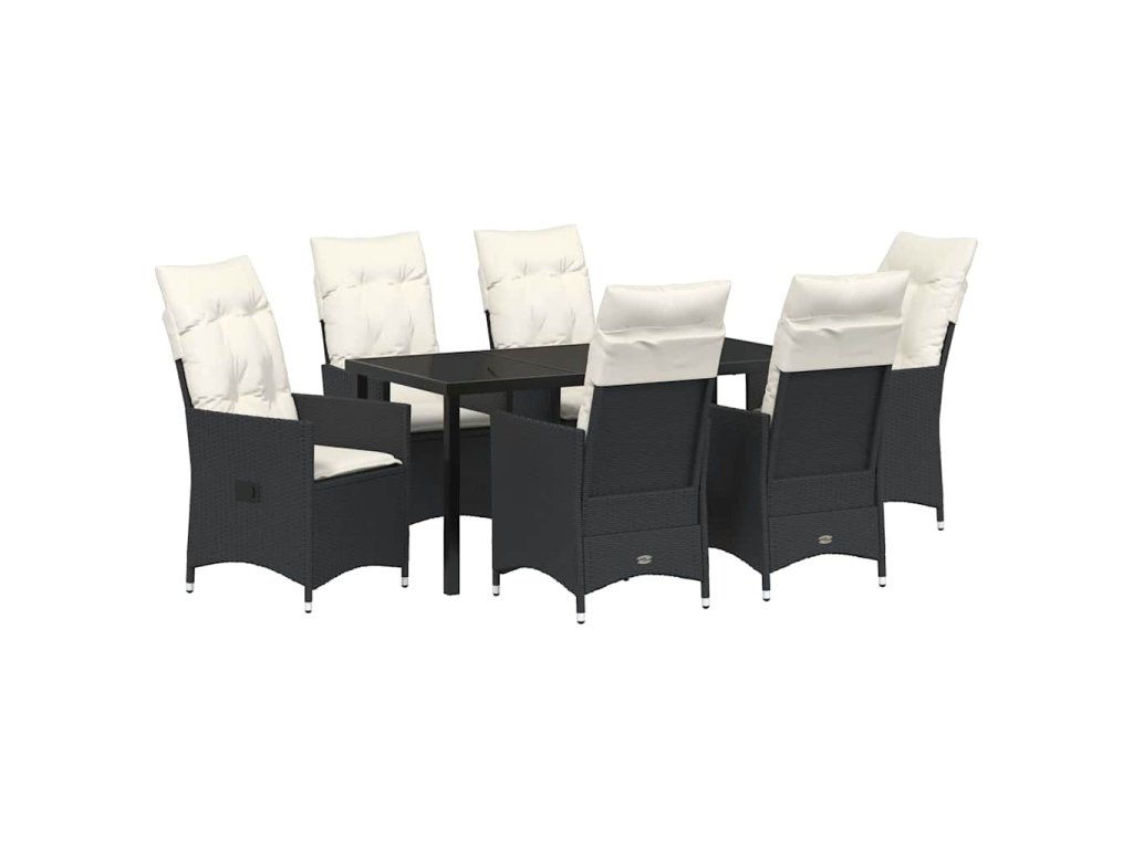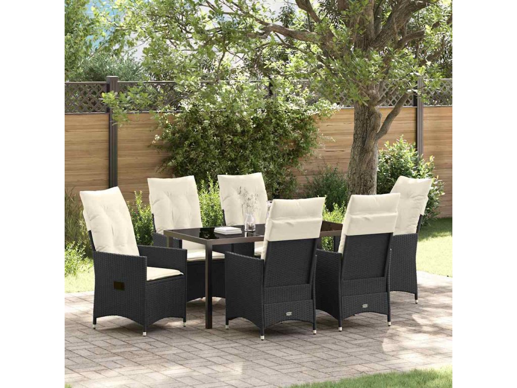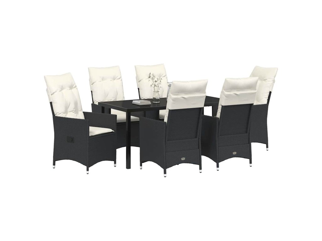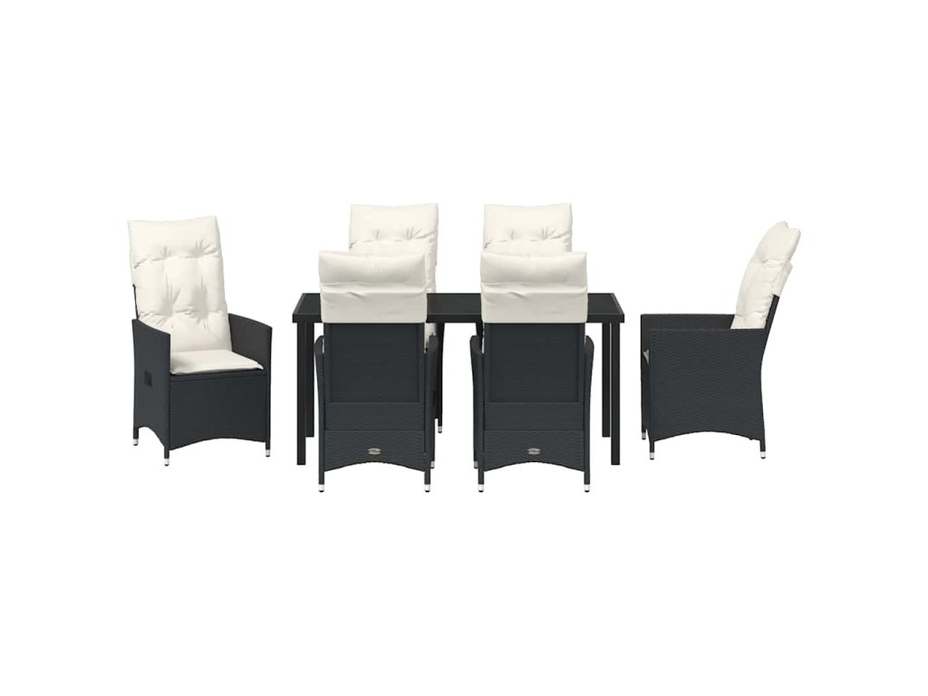 Zahradní jídelní souprava s polštářem 7 pcs Černá Poly ratan 3379538