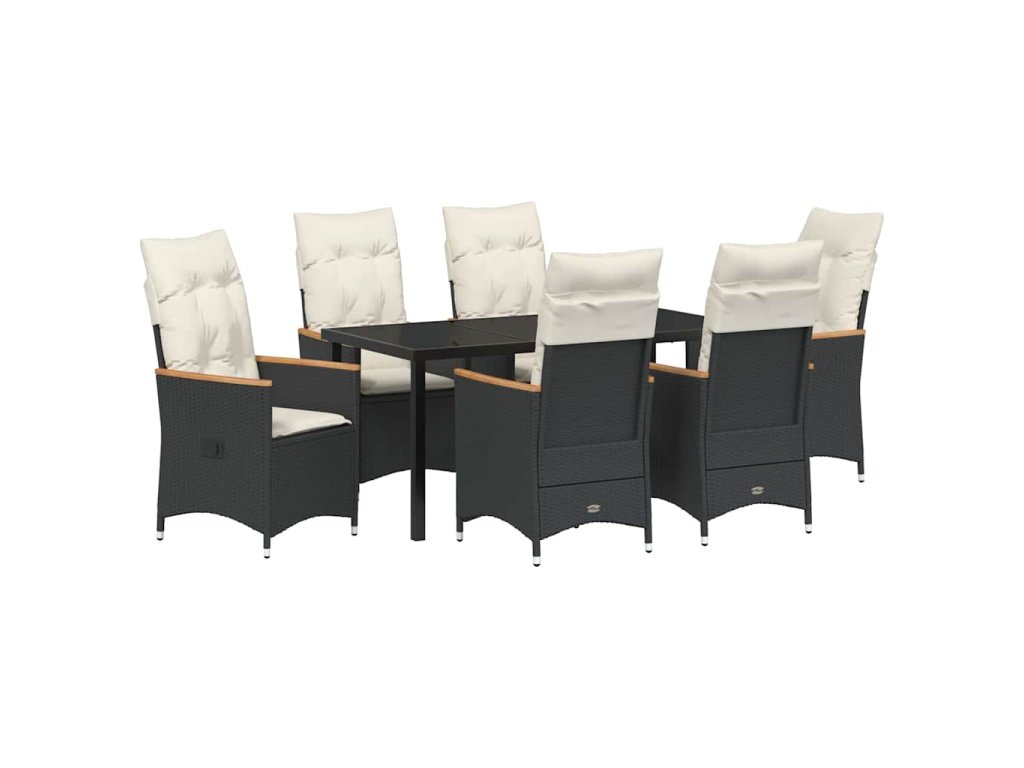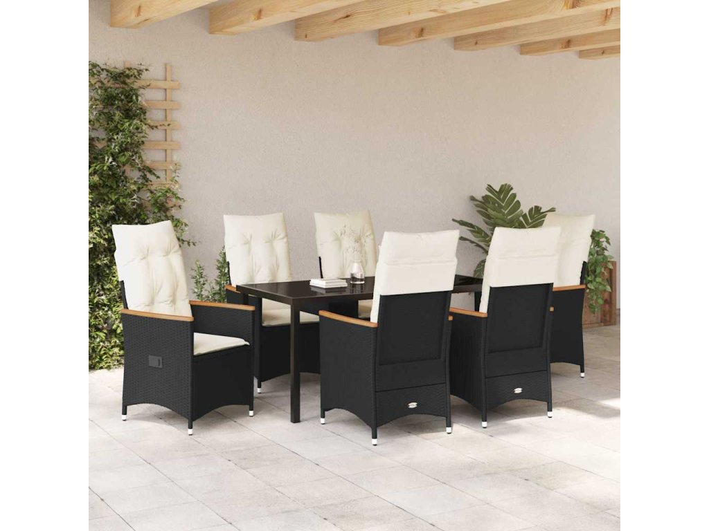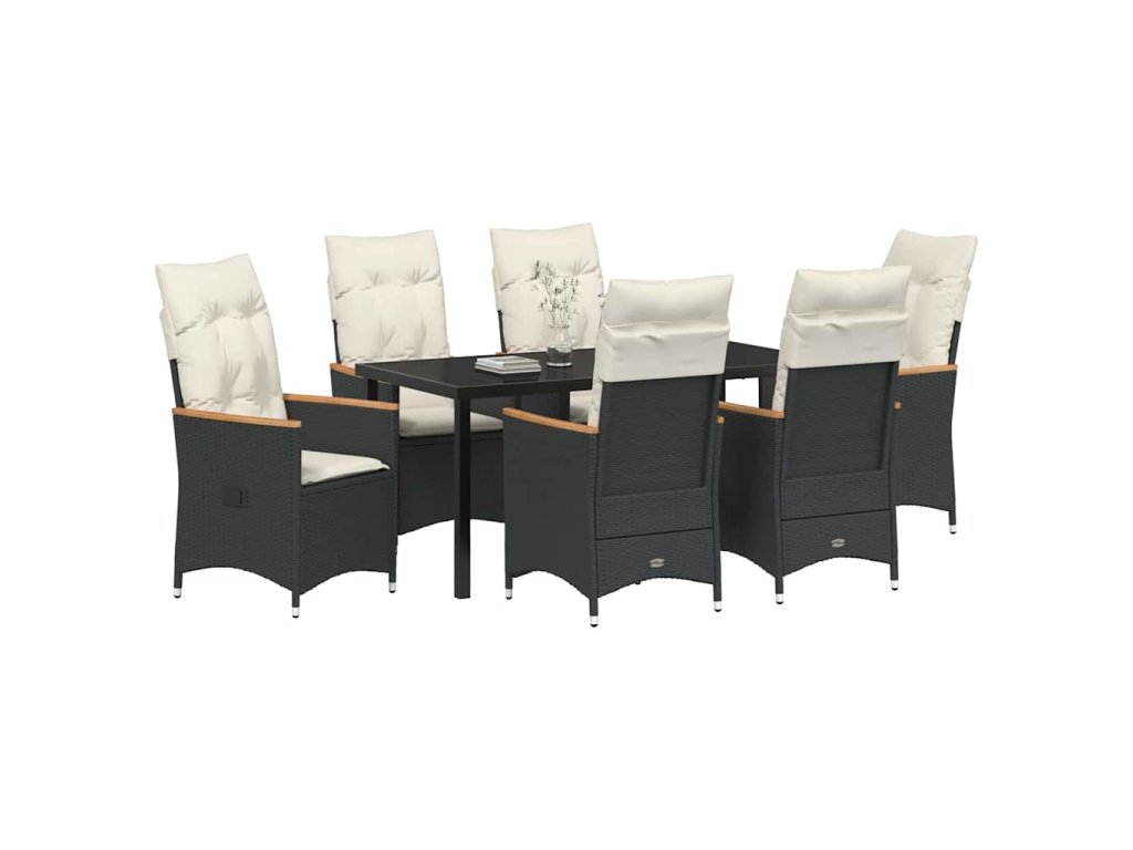 Zahradní jídelní souprava s polštářem 7 pcs Černá Poly ratan 3379608