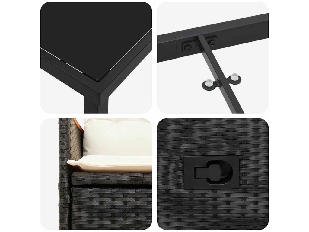 Tato venkovní sada nábytku dodá vaší zahradě nebo terase moderní šmrnc. Je vyrobená z poly ratanu a práškově lakované oceli, což ji činí stylovou a praktickou – přesně to, suitable for co potřebujete pro pohodlné venkovní bydlení. Ať už plánujete rodinnou oslavu nebo si jen vychutnáváte klid po dlouhém dni, tenhle design splní všechny vaše potřeby pro sezení a obohatí vaši venkovní výzdobu o šik prvek.