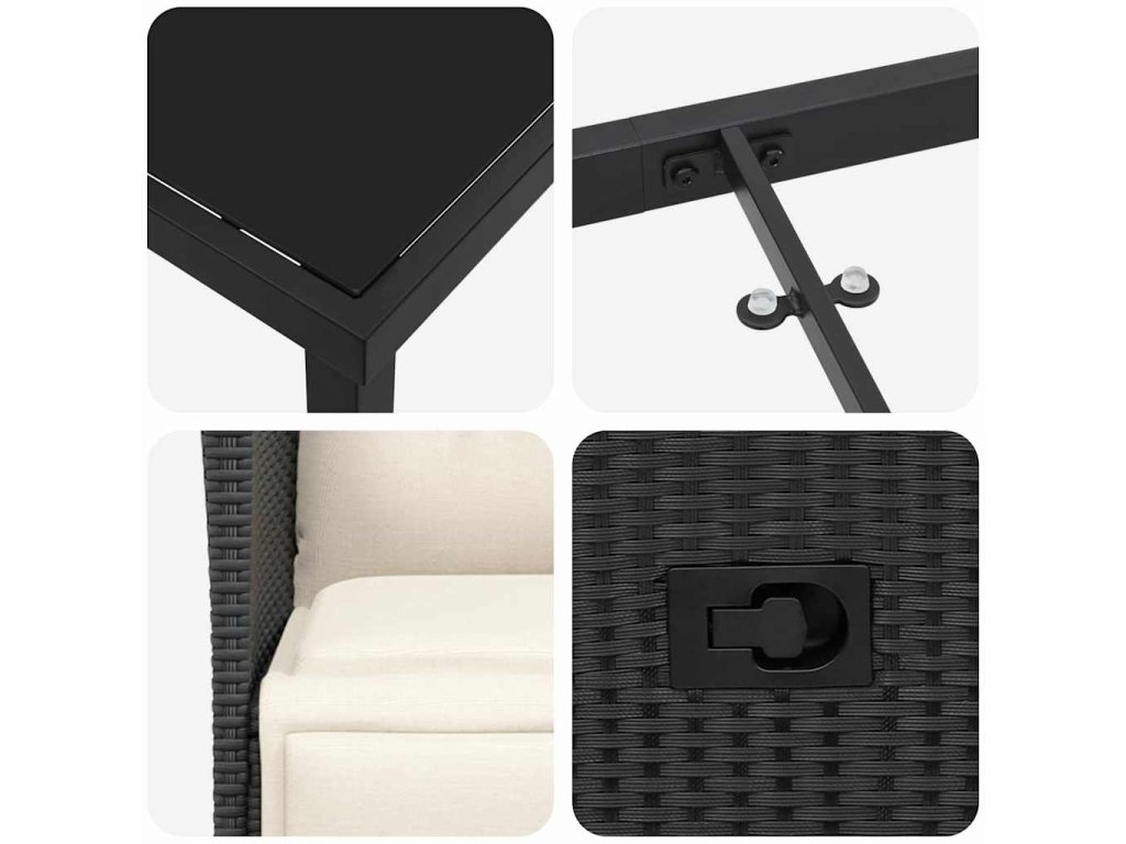 Tato venkovní sada nábytku dodá vaší zahradě nebo terase moderní šmrnc. Je vyrobená z poly ratanu a práškově lakované oceli, což ji činí stylovou a praktickou – přesně to, suitable for co potřebujete pro pohodlné venkovní bydlení. Ať už plánujete rodinnou oslavu nebo si jen vychutnáváte klid po dlouhém dni, tenhle design splní všechny vaše potřeby pro sezení a obohatí vaši venkovní výzdobu o šik prvek.