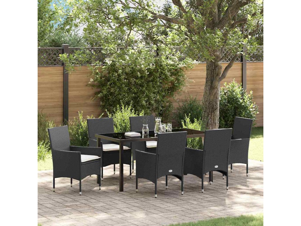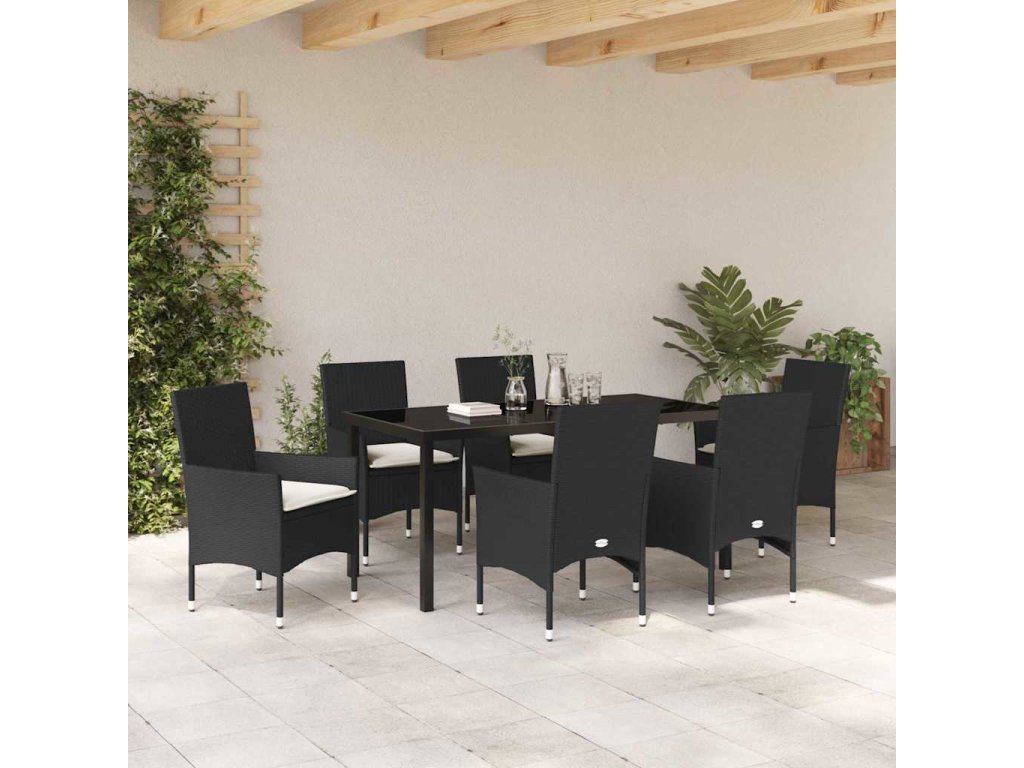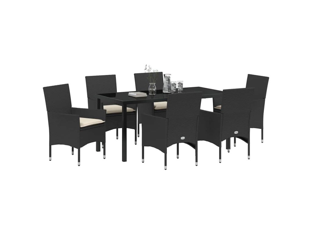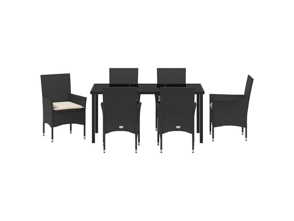 Zahradní jídelní souprava s polštářem 7 pcs Černá Poly ratan 3379769