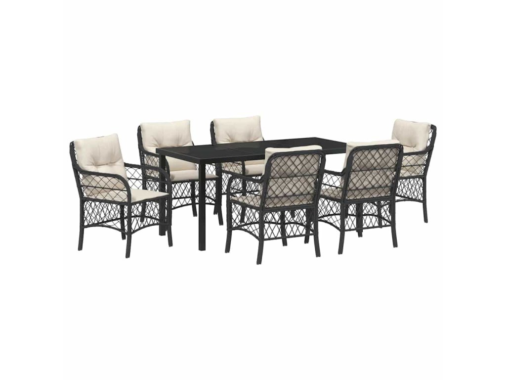 Zahradní jídelní souprava s polštářem 7 pcs Černá Poly ratan 3380201