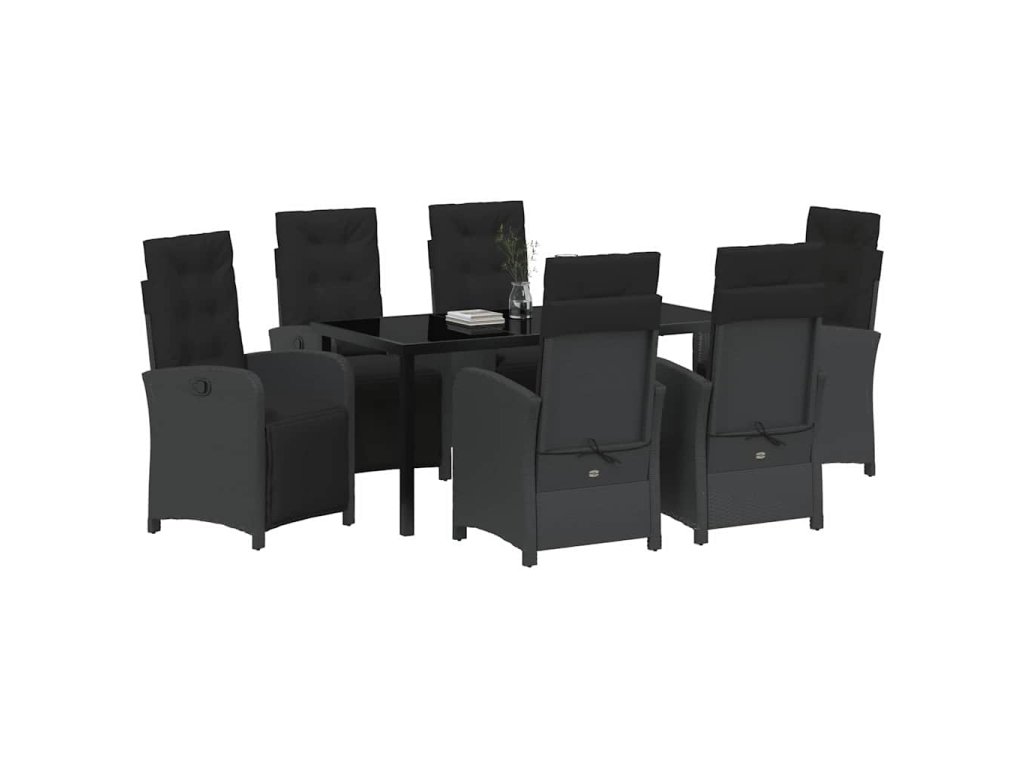 Zahradní jídelní souprava s polštářem 7 pcs Černá polyratan 3380313