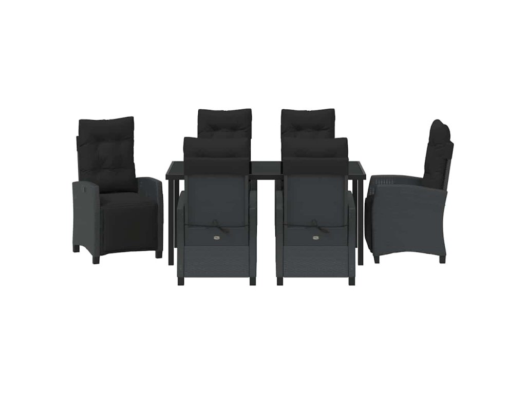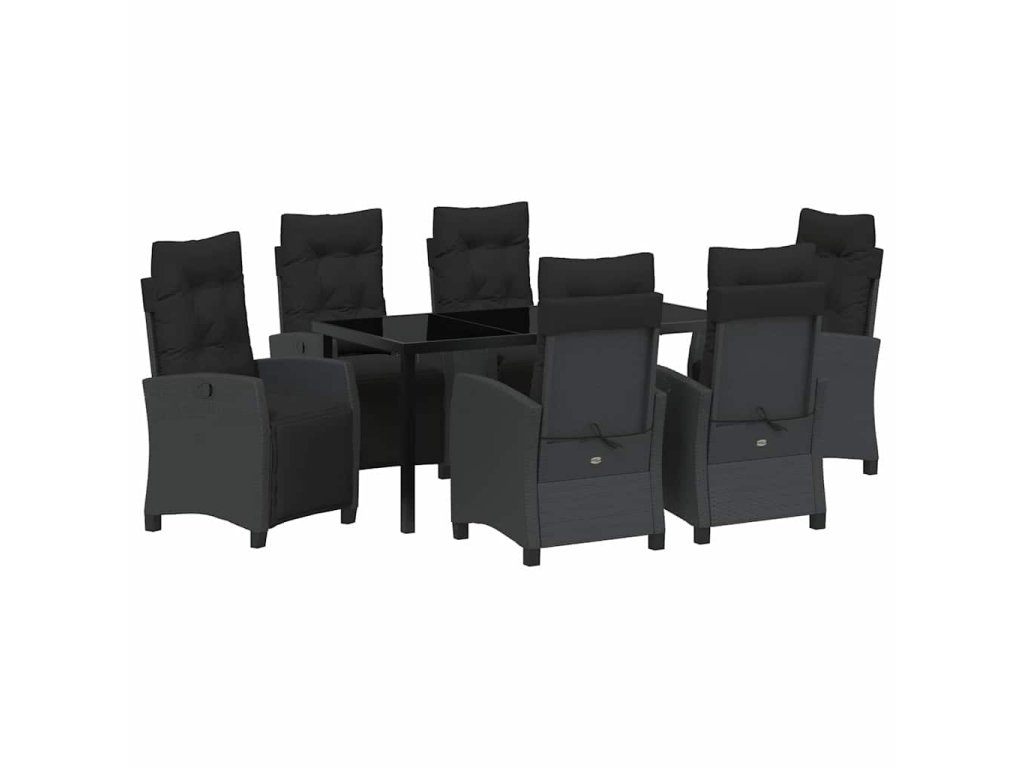 Zahradní jídelní souprava s polštářem 7 pcs Černá polyratan 3380425