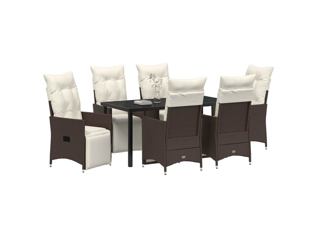Zahradní jídelní souprava s polštářem 7 pcs Hnědá Poly ratan 3379573