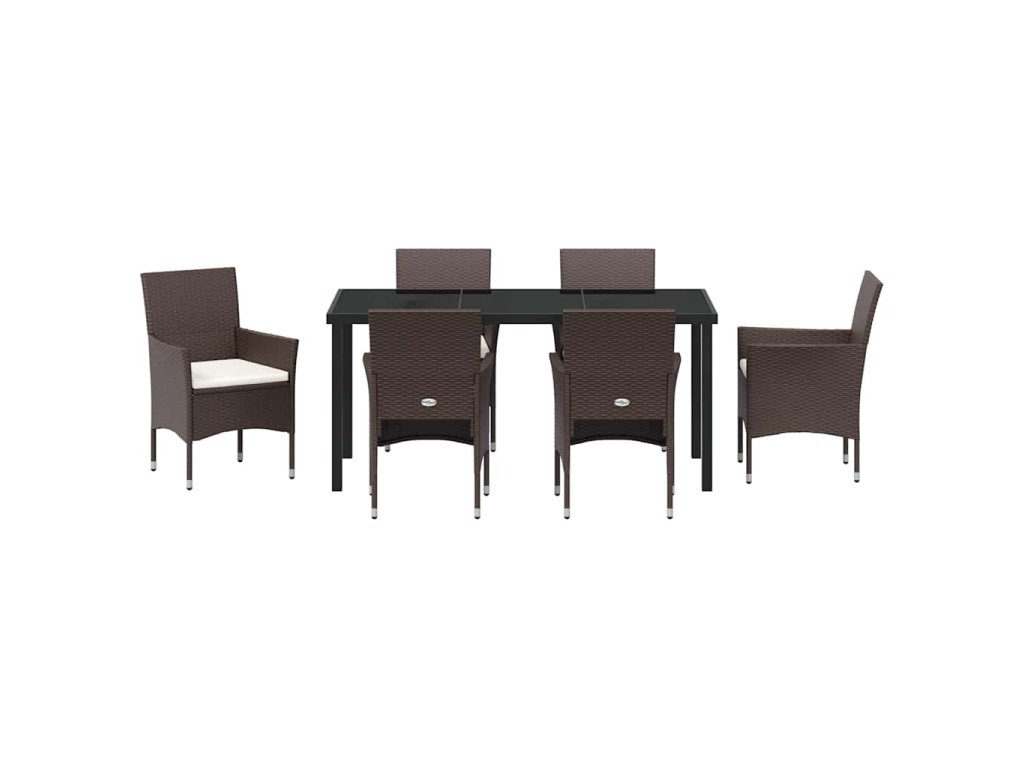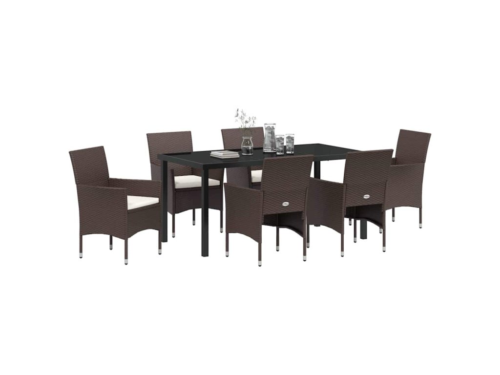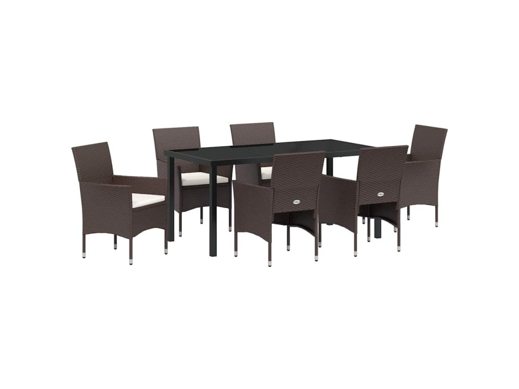 Zahradní jídelní souprava s polštářem 7 pcs Hnědá Poly ratan 3379748
