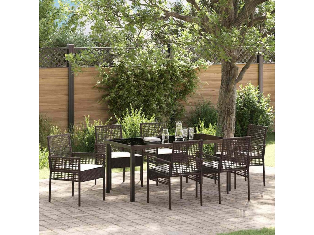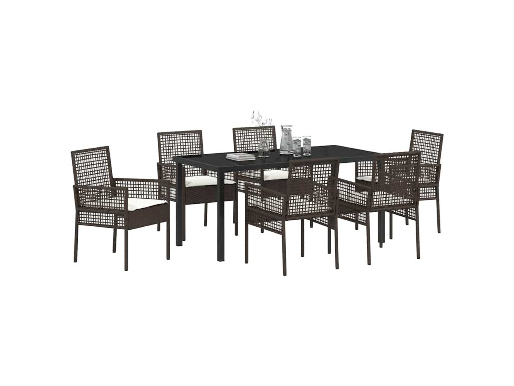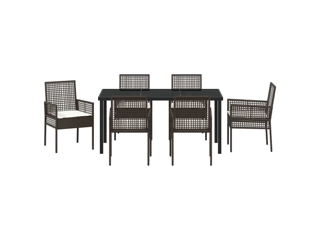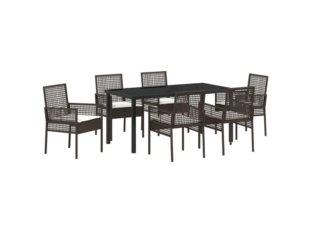 Zahradní jídelní souprava s polštářem 7 pcs Hnědá Poly ratan 3379874