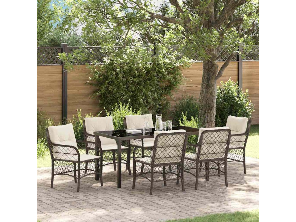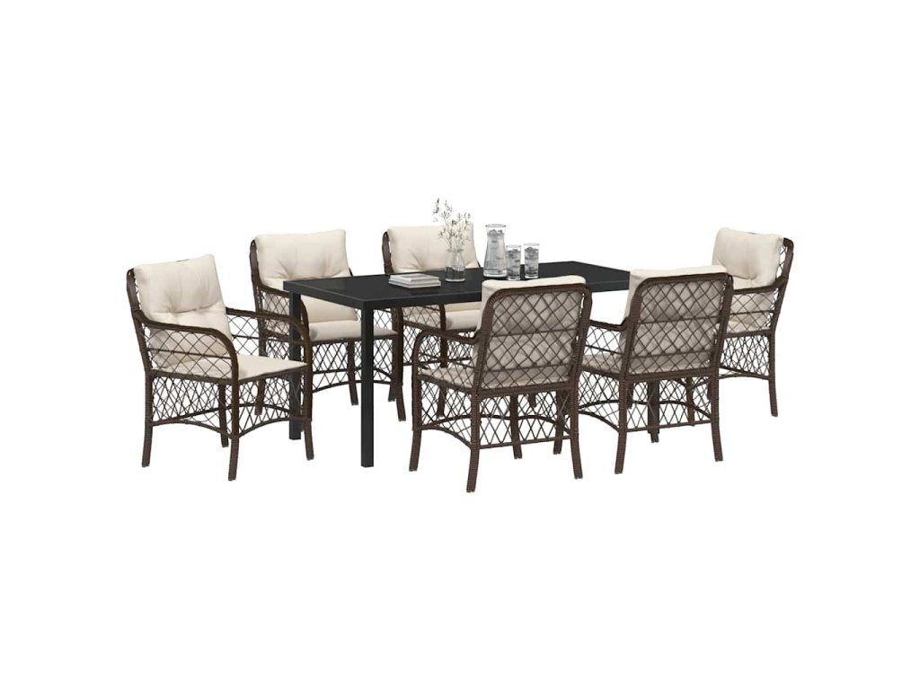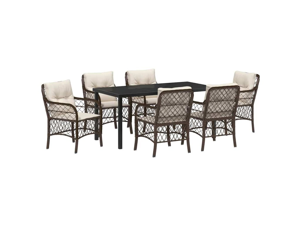 Zahradní jídelní souprava s polštářem 7 pcs Hnědá Poly ratan 3380215