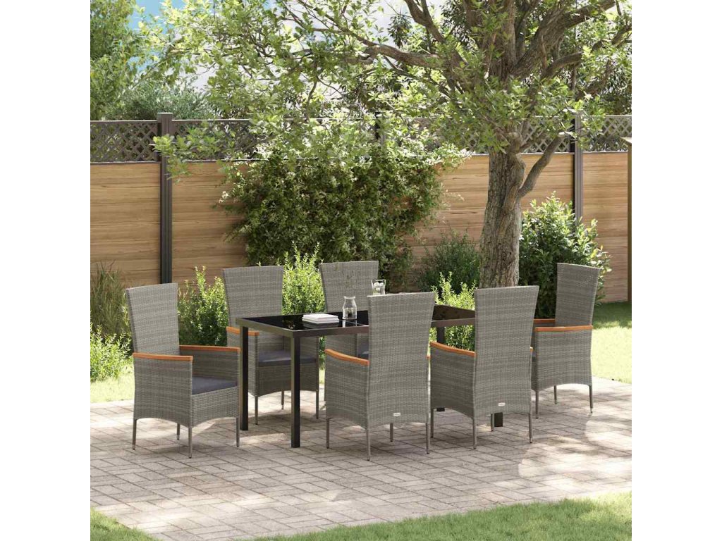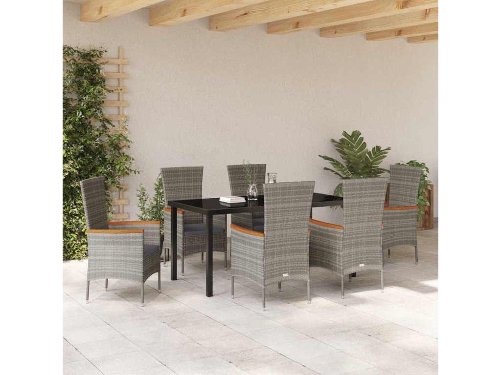 Zahradní jídelní souprava s polštářem 7 pcs Šedá Poly ratan 3379433