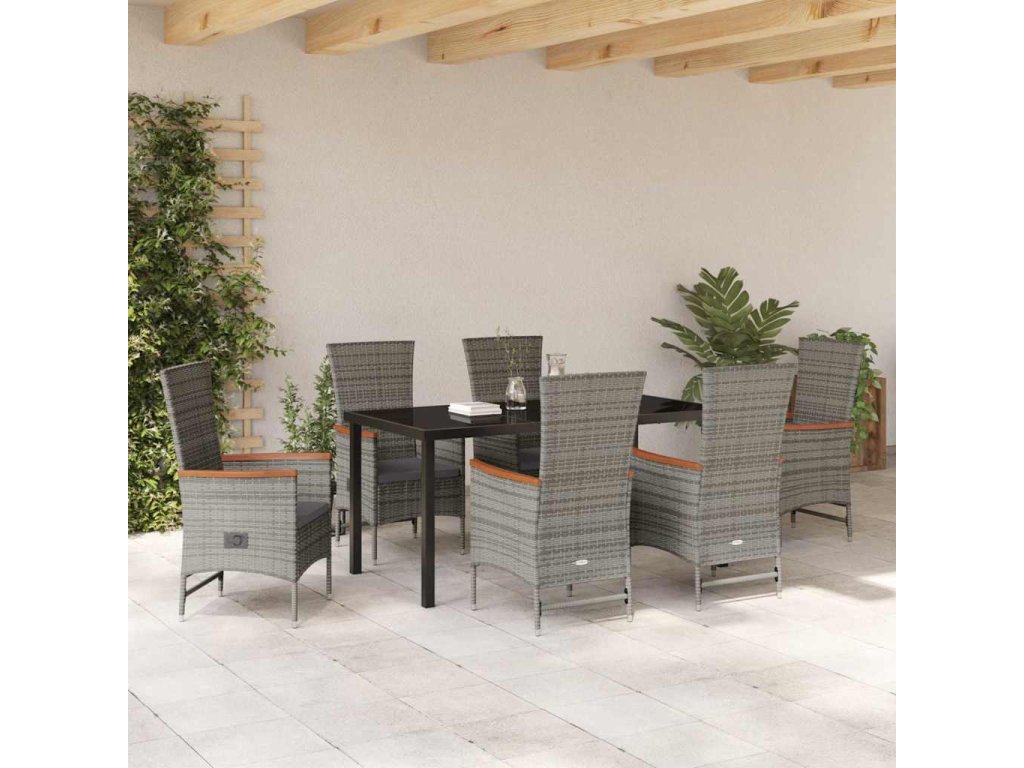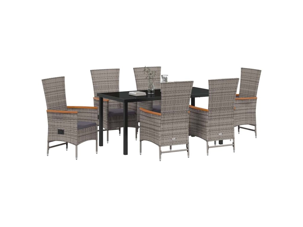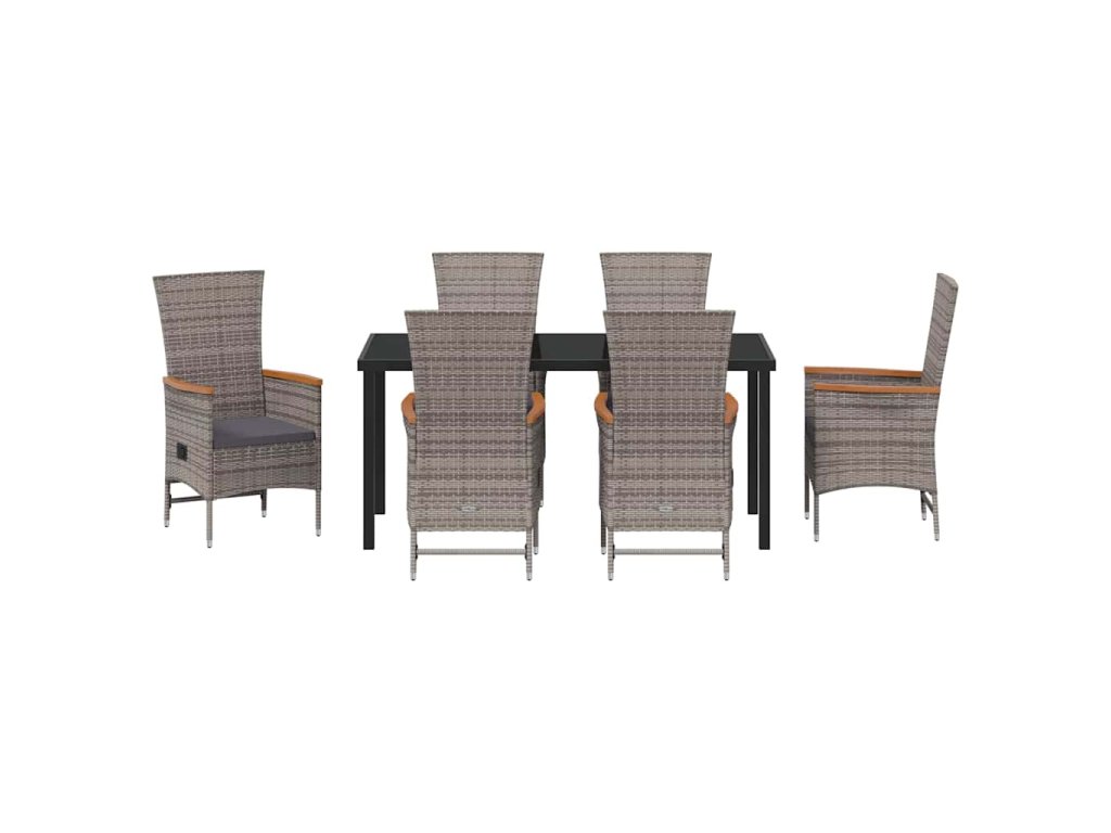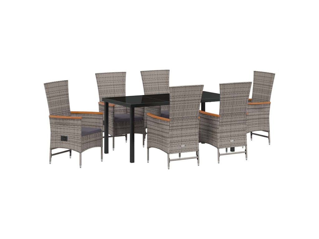 Zahradní jídelní souprava s polštářem 7 pcs Šedá Poly ratan 3379440