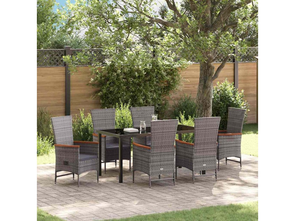 Vysoce kvalitní poly ratan: Hlavní materiál je poly ratan, který má moderní a elegantní vzhled a vydrží všechny povětrnostní podmínky. Je lehký a voděodolný, což usnadňuje jeho údržbu – ideální pro venkovní použití. Tento materiál vypadá dobře dlouho – skvělý pro zahrady nebo terasy, kde se styl setkává s odolností. Kompletní komponenty sady: Tato sada obsahuje pohodlné sedací polštáře z odolné venkovní textilie, nastavovací opěrku pro maximální pohodlí, ploché opěrky rukou z akáciového dřeva a skleněnou desku pro elegantní dotek. Každá část je vybrána tak, aby zvyšovala pohodlí a flexibilitu pro venkovní sezení, ať už odpočíváte nebo hostíte. Účinnost prostoru a pohodlí: Díky sklopné funkci se každá židle snadno přizpůsobí pro maximální pohodlí. Můžete měnit polohy židle podle toho, suitable for co děláte, ať už čtete, jíte, nebo spíte. To je skvělé pro přizpůsobení se různým příležitostem, jak se mění roční období, kombinující praktičnost s pohodovým venkovním stylem. Univerzální venkovní využití: Skvělá pro zahrady, terasy, nebo k bazénu, tato nábytková sada se hodí do jakéhokoli prostředí. Její moderní styl se dá sladit s různými venkovními tématy, a zároveň je dost praktická na to, aby se dala přemístit podle vašich přání, čímž každé uspořádání odráží váš osobní vkus. Snadná péče a údržba: Potahy polštářů se dají stáhnout a jsou pratelné, což usnadňuje údržbu bez velké námahy. Stačí se vyhnout drsným chemikáliím při čištění a používat měkké hadříky, aby si udržely svůj vzhled. Pravidelná údržba zajistí, že budou v super stavu a budou vypadat skvěle, ať už je používáte jakkoli.- Barva: Šedá