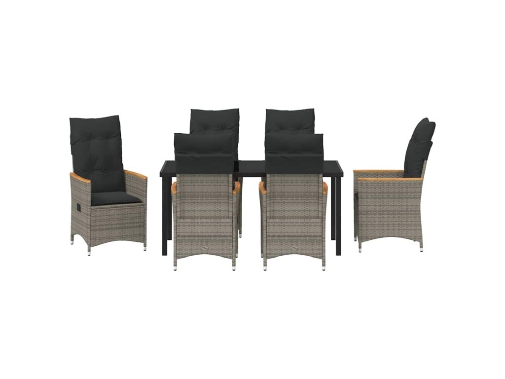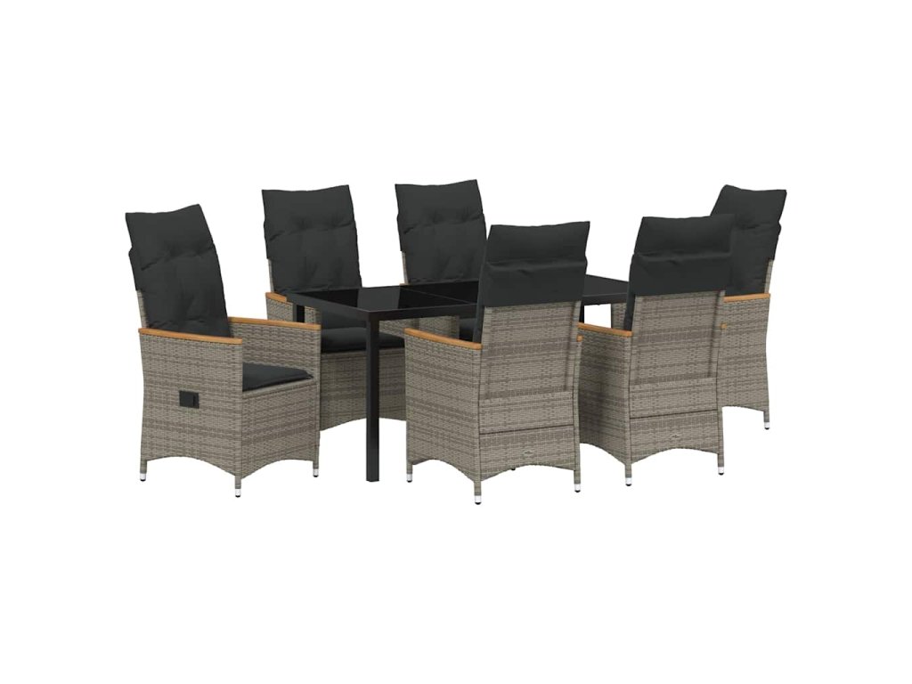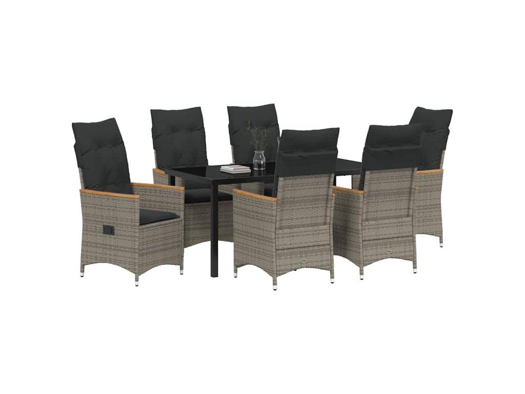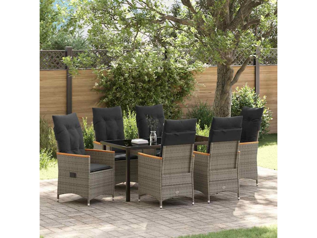 Zahradní jídelní souprava s polštářem 7 pcs Šedá Poly ratan 3379622