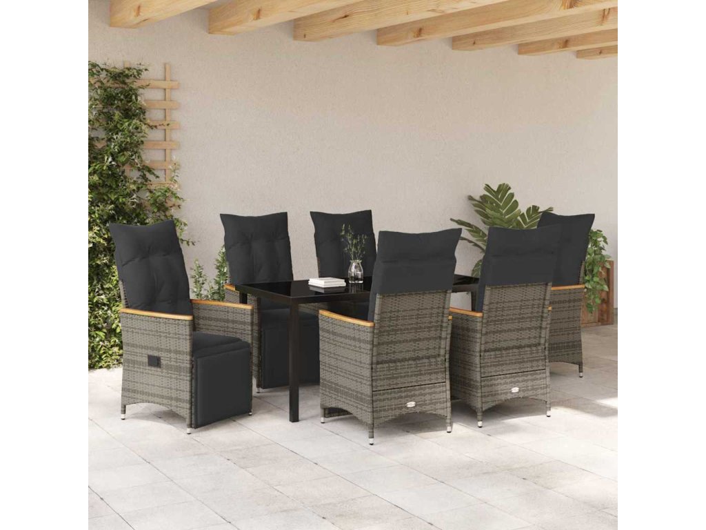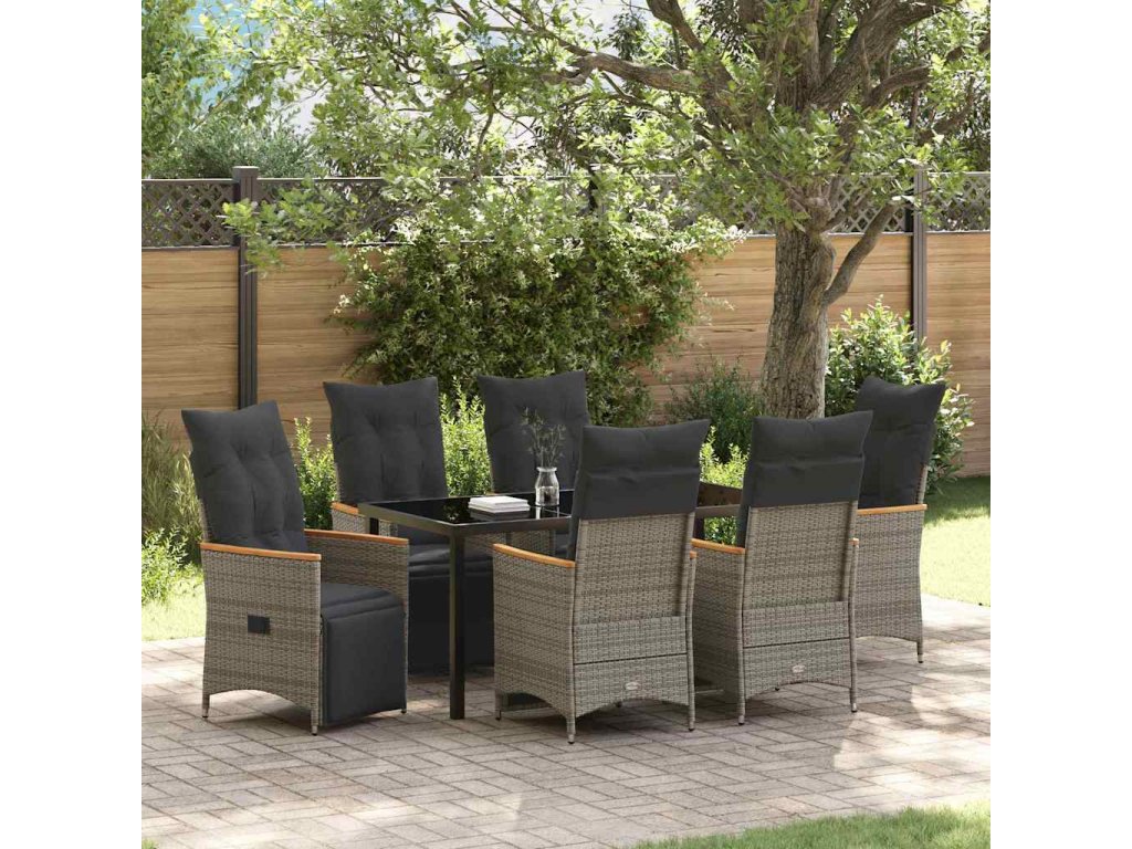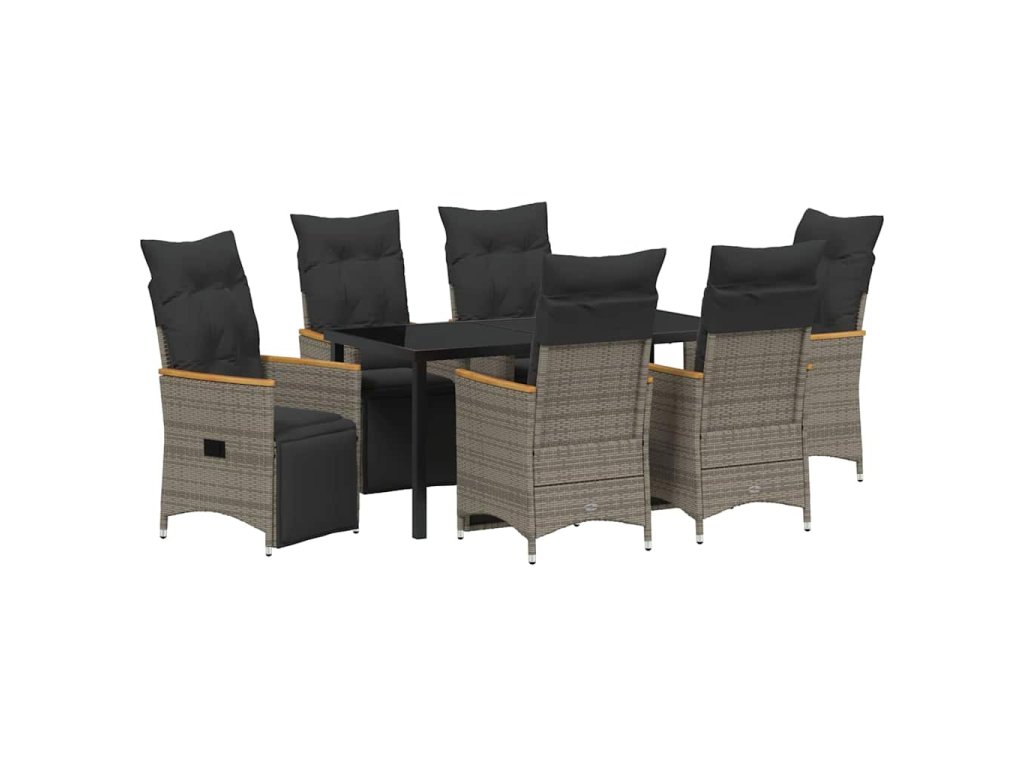 Zahradní jídelní souprava s polštářem 7 pcs Šedá Poly ratan 3379629