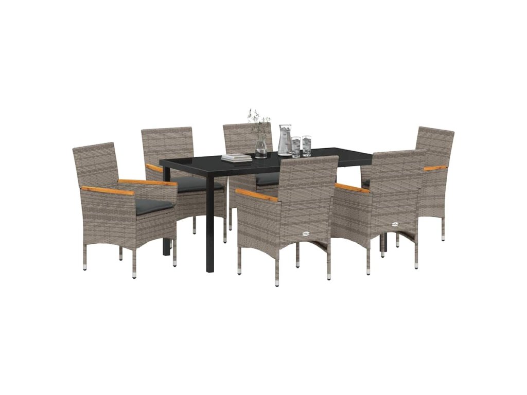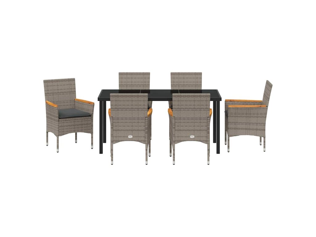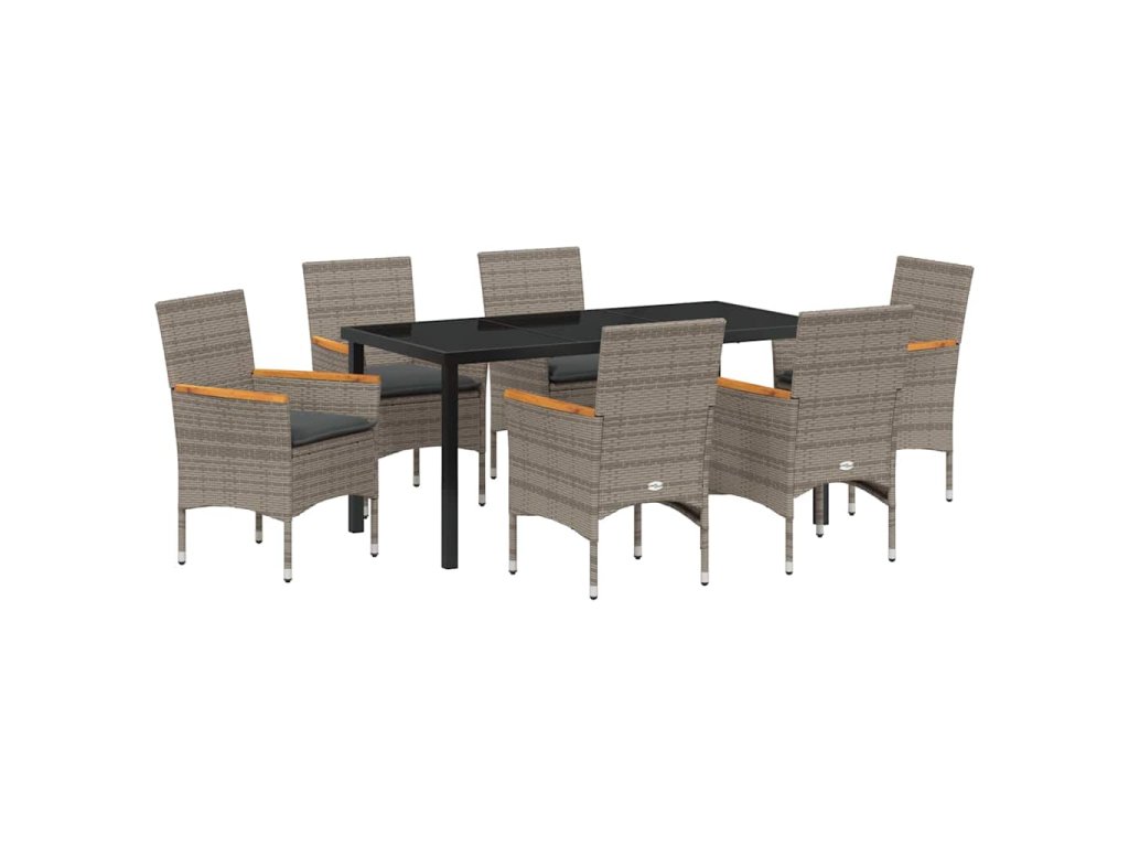 Zahradní jídelní souprava s polštářem 7 pcs Šedá Poly ratan 3379853