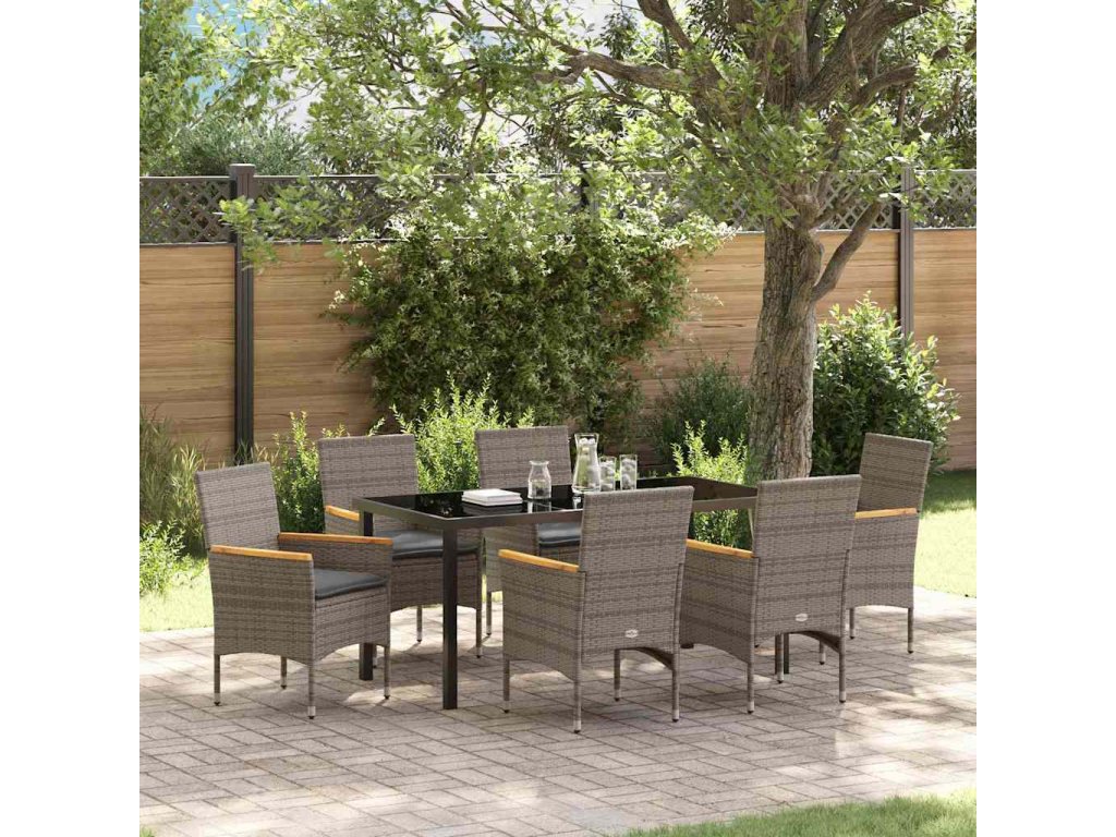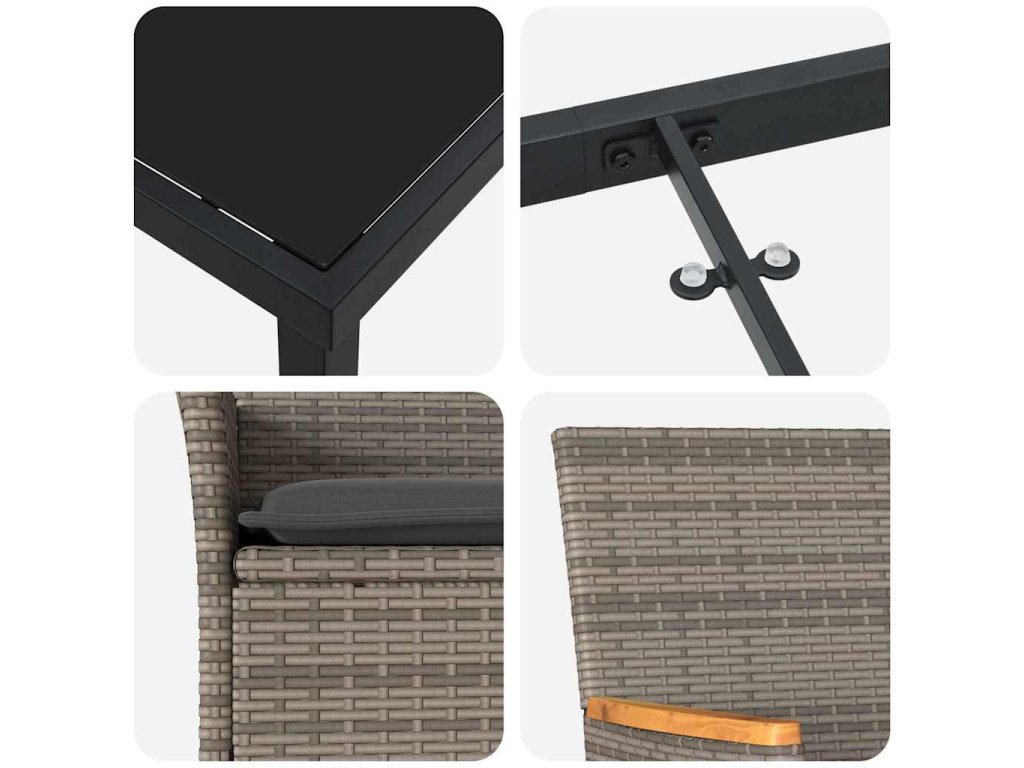 - Součásti: Tento nábytek zahrnuje prvky, jako je stůl z tvrzeného skla, který se hodí k tkanému designu. Pohodlné polštáře mají silnou pěnu pro ještě větší komfort a akáciové područky dávají jedinečný dotek - skvělá kombinace formy a funkce, která dělá každé sezení příjemným.