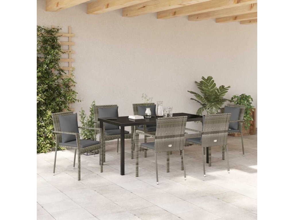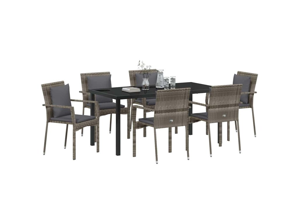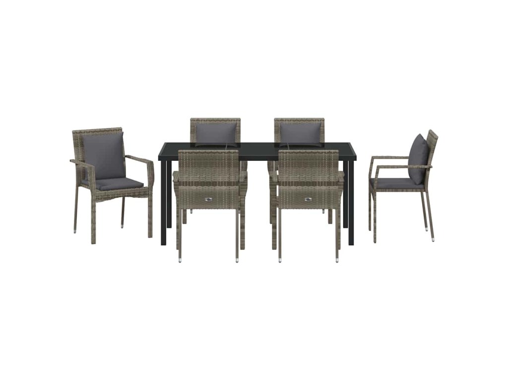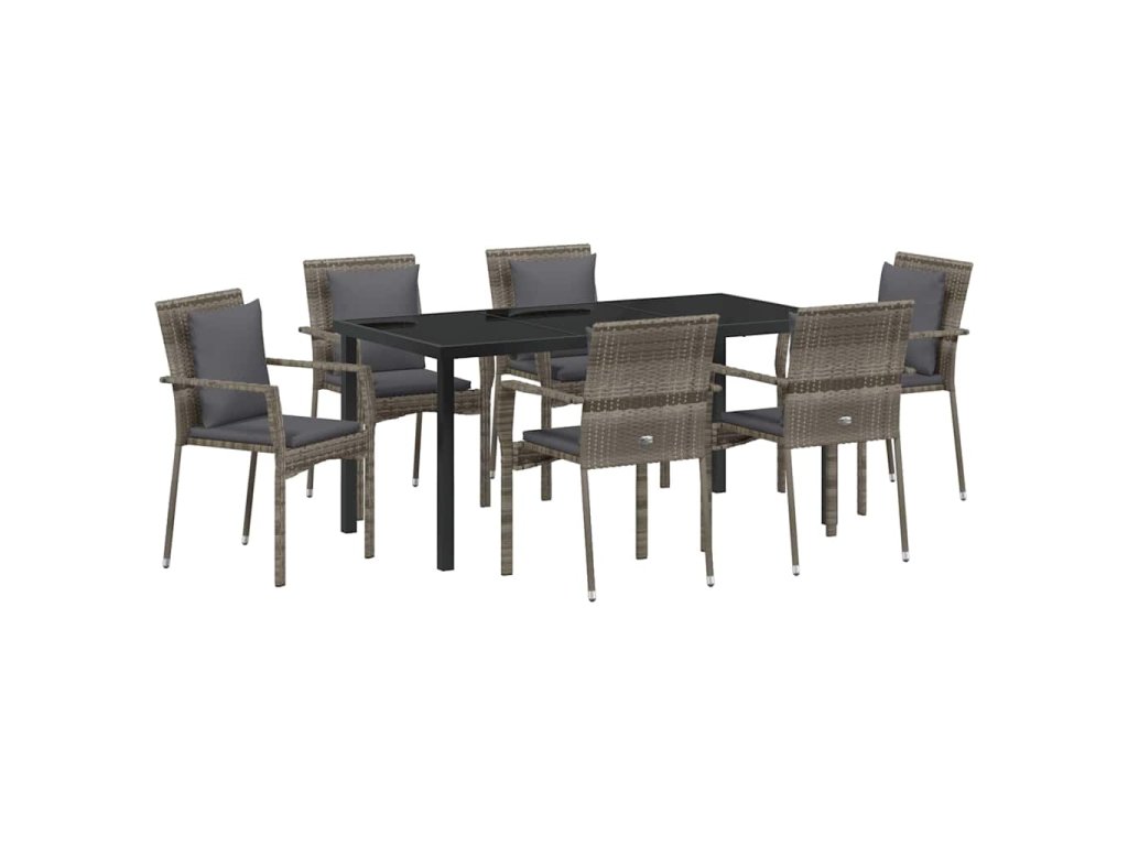 Zahradní jídelní souprava s polštářem 7 pcs Šedá Poly ratan 3380089