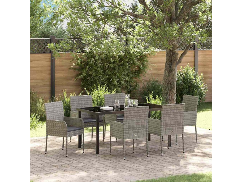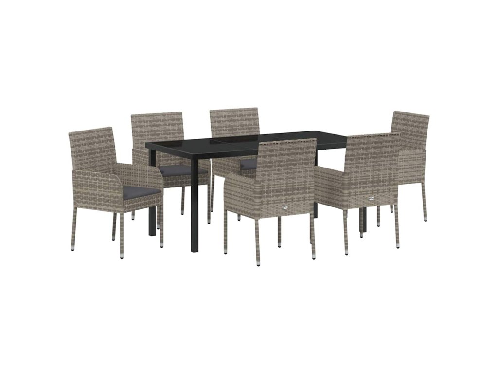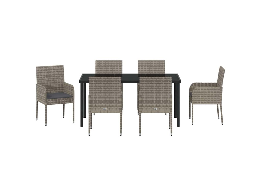 Zahradní jídelní souprava s polštářem 7 pcs Šedá Poly ratan 3380110
