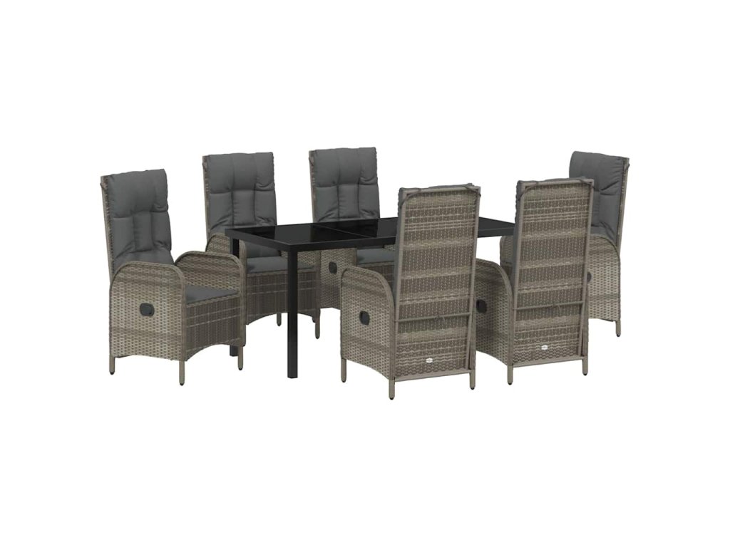 Zahradní jídelní souprava s polštářem 7 pcs Šedá Poly ratan 3380131