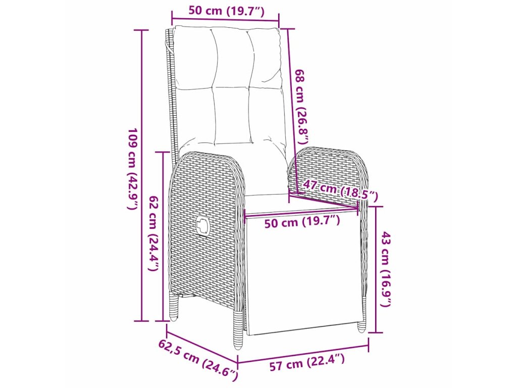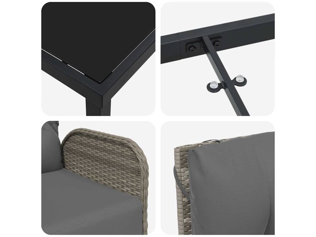 - Vysokokvalitní materiály: Z pevného polyratanu a oceli, je robustní, ale lehká, což usnadňuje přenos. Tyto materiály vypadají dobře a dodávají styl vašemu venkovnímu prostoru.