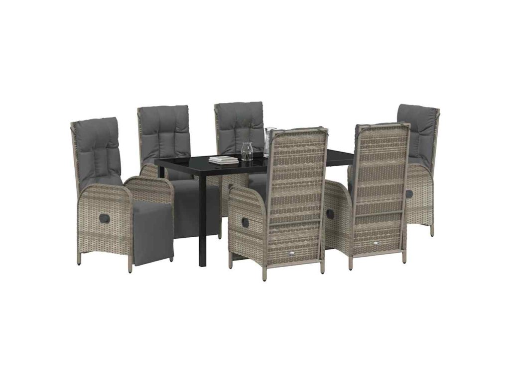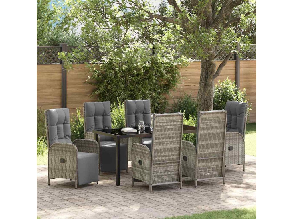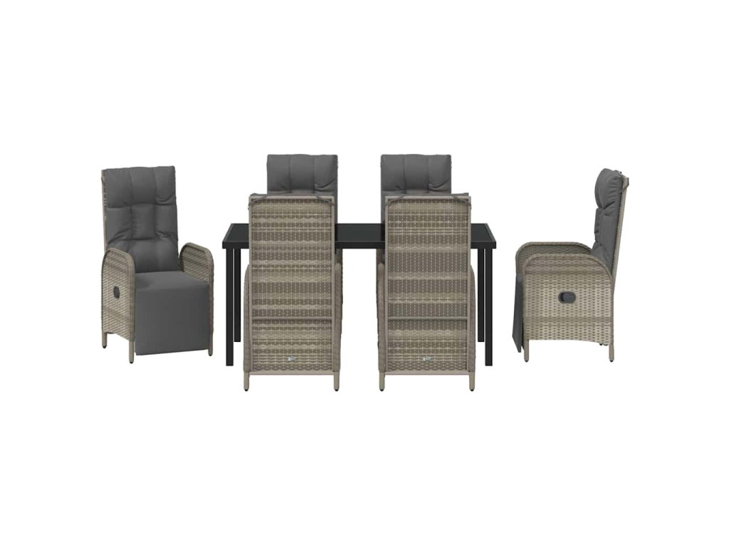 Zahradní jídelní souprava s polštářem 7 pcs Šedá Poly ratan 3380138