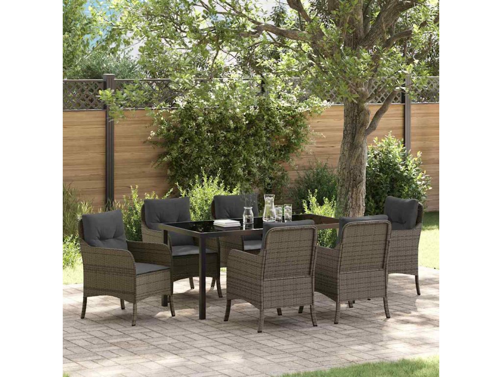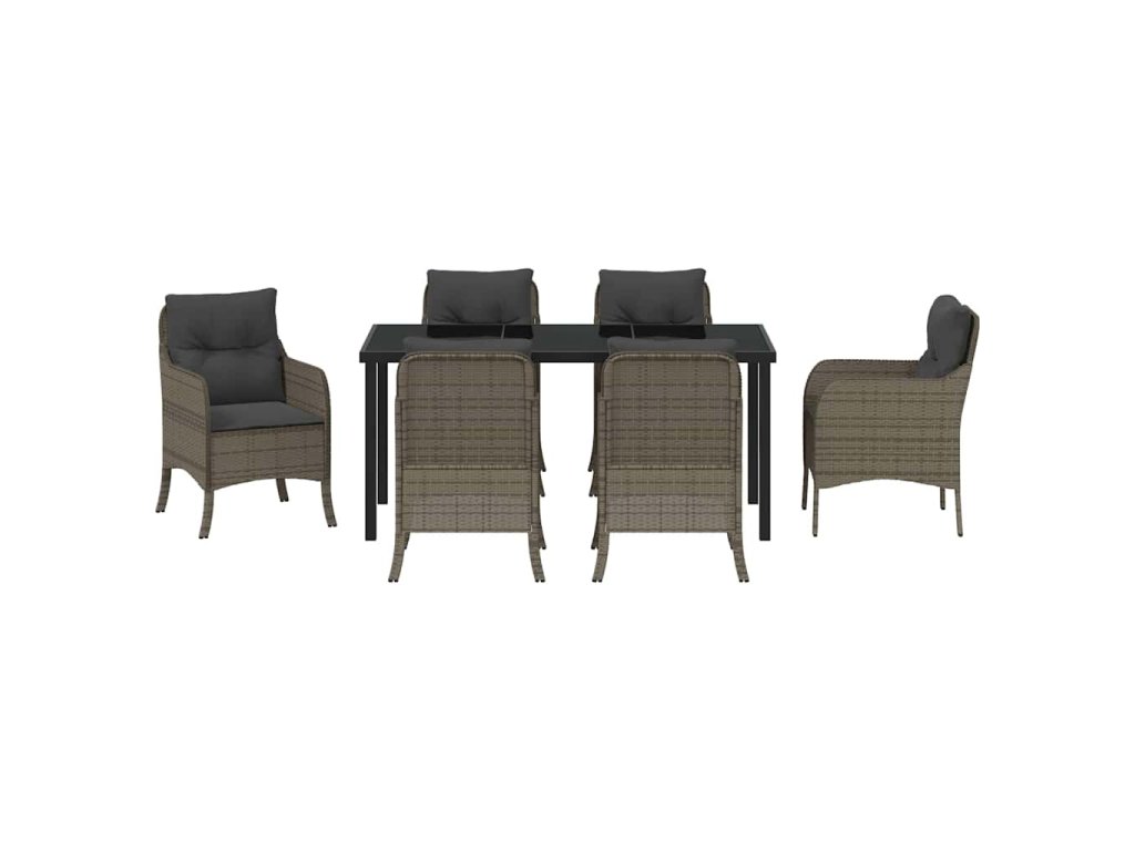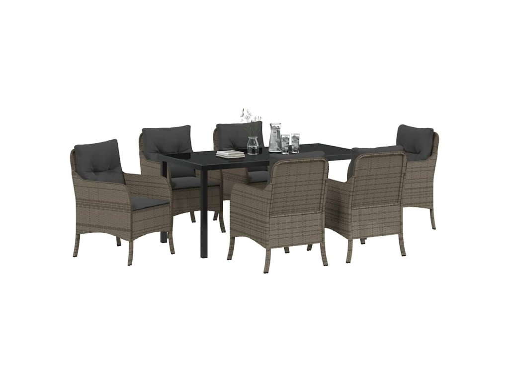 Zahradní jídelní souprava s polštářem 7 pcs Šedá Poly ratan 3380166