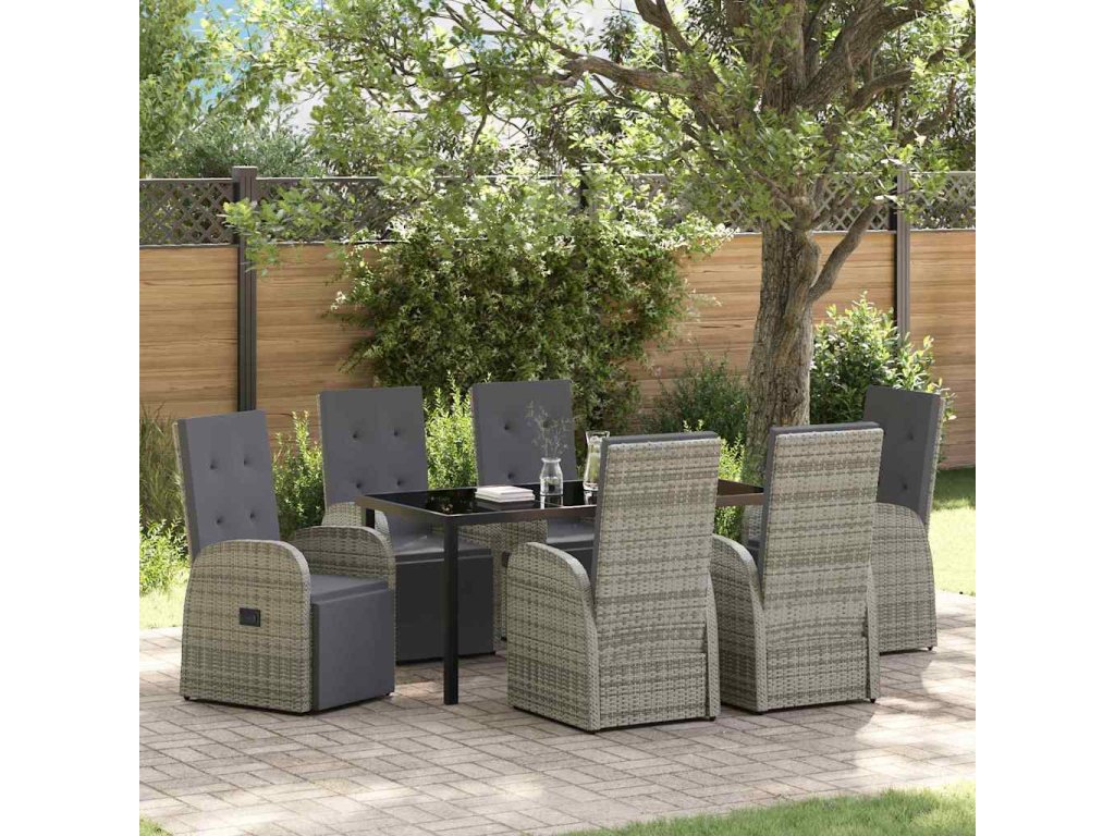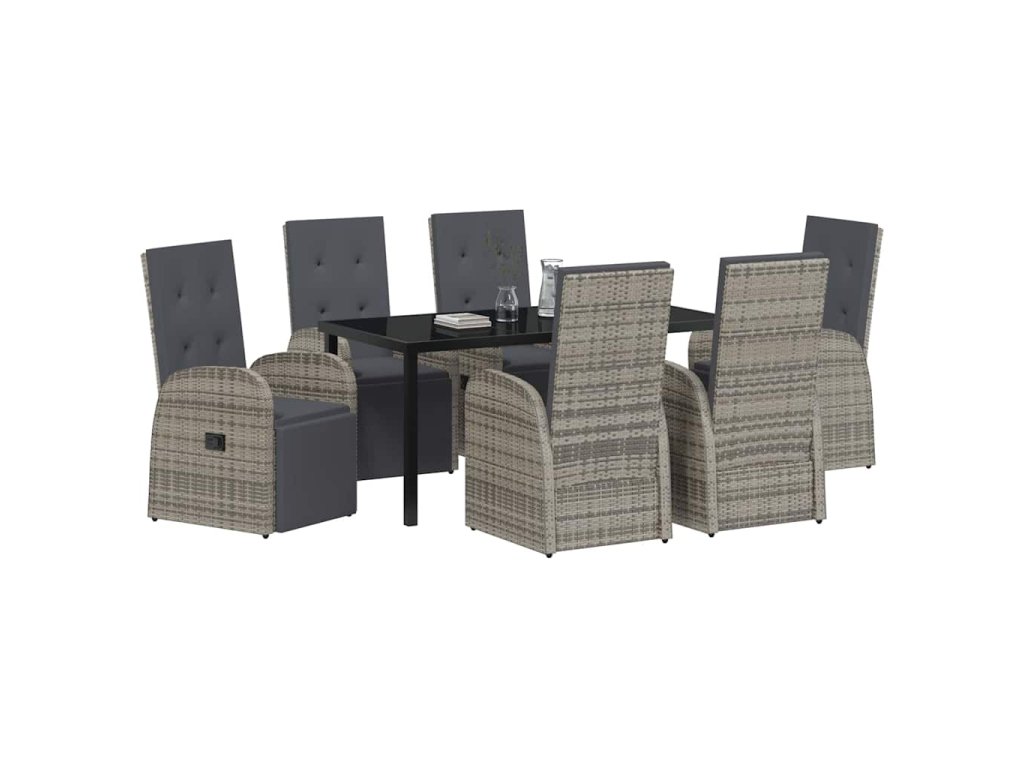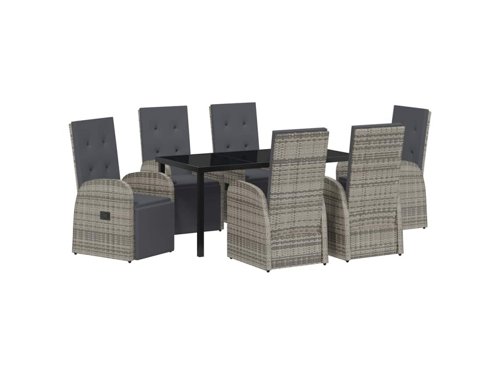 Zahradní jídelní souprava s polštářem 7 pcs Šedá polyratan 3379489