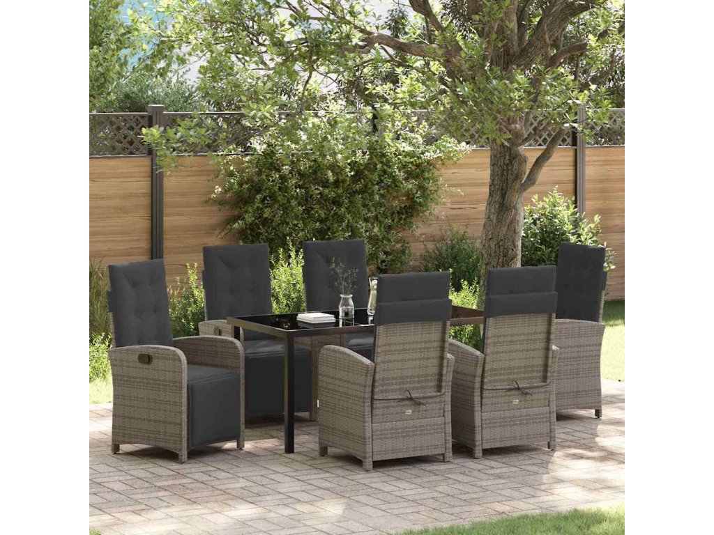 Zahradní jídelní souprava s polštářem 7 pcs Šedá polyratan 3380327