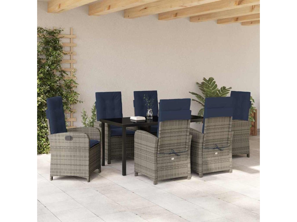 Zahradní jídelní souprava s polštářem 7 pcs Šedá polyratan 3380355
