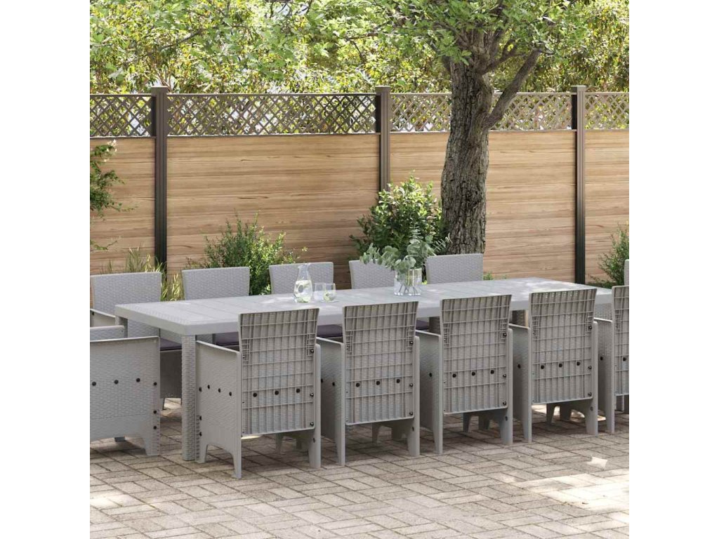 Tento venkovní jídelní set s ergonomickým designem spojuje jednoduchost a funkčnost moderního nábytku a láká na venkovní stravování. Vytvořen speciálně pro zahrady a terasy, zve rodinu a přátele k relaxaci a venkovnímu hodování v teplých letních dnech. Obdélníková konfigurace setu s hladkým povrchem a matným finišem dodává nádech elegance jakémukoliv venkovnímu prostoru. Díky ergonomickému designu je sezení pohodlné, ideální pro dlouhé diskuse a uvolněné večeře pod sluncem. Poly ratanové materiály v kombinaci s moderním stylem dělají z setu středobod vaší zahrady.