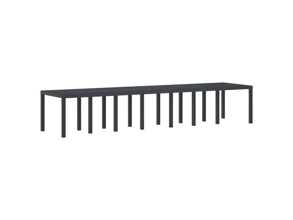 Poly ratanová konstrukce Set je vyrobený z poly ratanu, který je známý svojí trvanlivostí a skvělým vzhledem. Je odolný vůči letnímu počasí a zachovává si svůj vzhled i během času. Snadno se udržuje a spojuje styl s funkčností, takže je ideální pro venkovní použití. Pohodlí sezení Každé sedadlo má příjemné polstrování, které zaručuje pohodlí při delším sezení. Rám z poly ratanu poskytuje oporu, což umocňuje zážitek ze sezení. Skvělé na zahradní párty nebo rodinné sejítí, kde je pohodlí na prvním místě. Ploché opěrky rukou Ploché opěrky rukou zvyšují pohodlí a dělají celý set ještě elegantnější. Tento designový prvek podtrhuje jednoduchost a funkčnost setu, dokonale ladí s moderními trendy, kde funkce jde ruku v ruce s designem. Prostorné uspořádání Měří 400 x 100 cm, což nabízí dostatek místa pro velké skupiny. Je to ideální místo pro zábavu hostů s bohatým stolem. Každý má dost místa kolem stolu a to zlepšuje celkový zážitek ze stolování. Snadné sestavení Set se sestavuje ve dvou s šroubovákem. Instrukce jsou jasné, takže sestavení je rychlé a bezproblémové, což zajišťuje stabilní a spolehlivou nabídku pro letní příležitosti.- Barva: Antracit