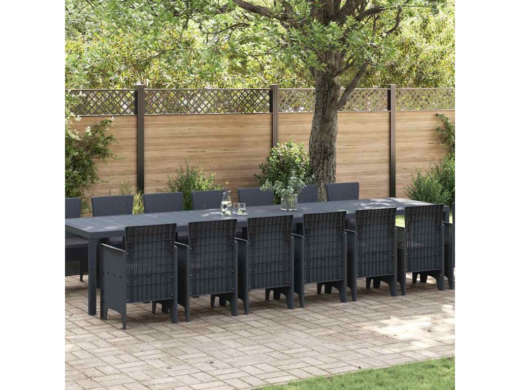 Zahradní jídelní souprava s polštáři 15 pcs Antracit PP 3378795
