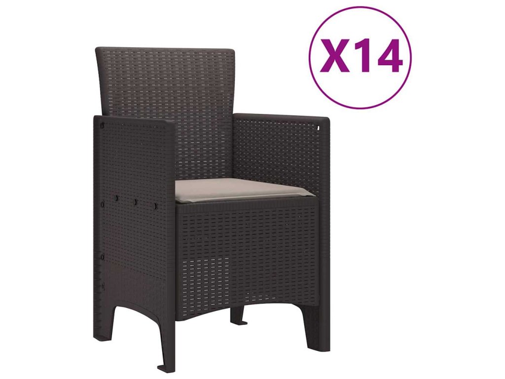 Zahradní jídelní souprava s polštáři 15 pcs Hnědá PP 3378798